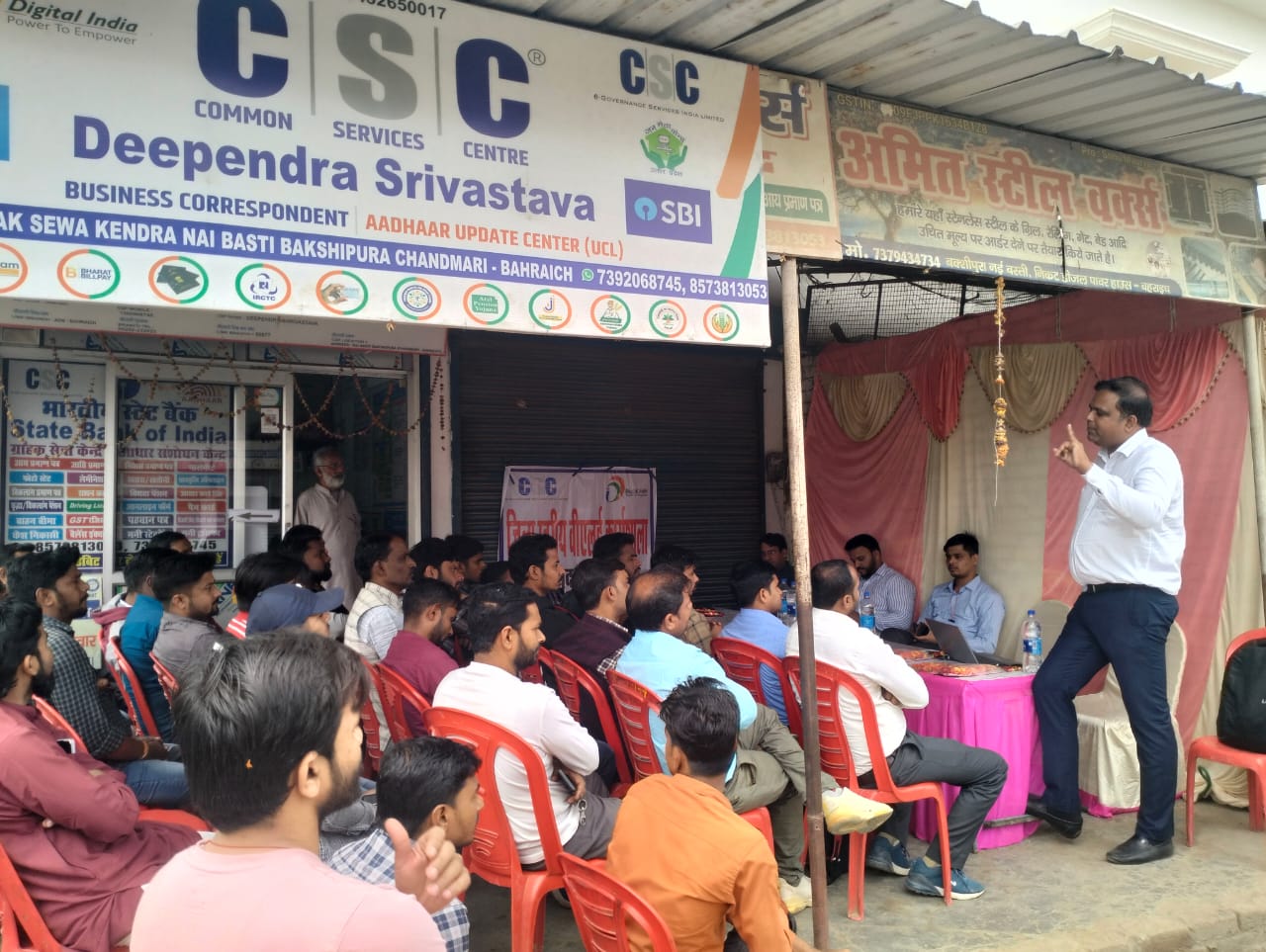 कार्यशाला में आए सभी लोगो का जिला प्रबंधक विशाल सिंह महेंद्र सिंह व अमित वर्मा ने पुष्प गुच्छ दे कर स्वागत किया। सीएससी से संबंधित लगभग सभी प्रकार के कार्यों के संदर्भ में केंद्र संचालकों को सीएससी राज्य कार्यालय से उपस्थित टीम के द्वारा केंद्र संचालकों को प्रशिक्षित किया गया ।जिसके अंतर्गत भारत, बिजली बिल, बैंकिंग सेवा, आधार सेवा , डीजीपे, आईआरसीटीसी, एनपीएस आदि के संबंध में प्रशिक्षण दिया गया। इस प्रशिक्षण कार्यशाला में सभी से मिलने वाले कमीशन के बारे में बताया गया । प्रशिक्षण में लगभग 50 से अधिक संख्या में केंद्र संचालकों ने प्रतिभाग लिया।इस मौके पर जिला प्रबंधक विशाल सिंह महेंद्र सिंह व अमित वर्मा मौजूद रहे।