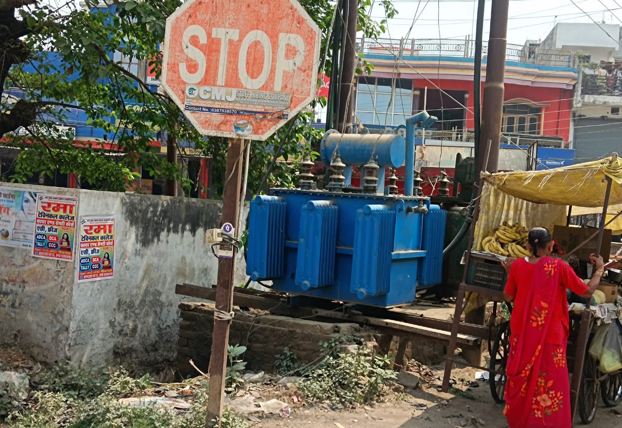 महराजगंज(राष्ट्र की परम्परा)। ठूठीबारी कस्बा के मुख्य तिराहे के पास बने चबूतरा पर स्थापित बिना लोहे के जाली लगाये ट्रांसफार्मर हादसे का सबब बना हुआ है।