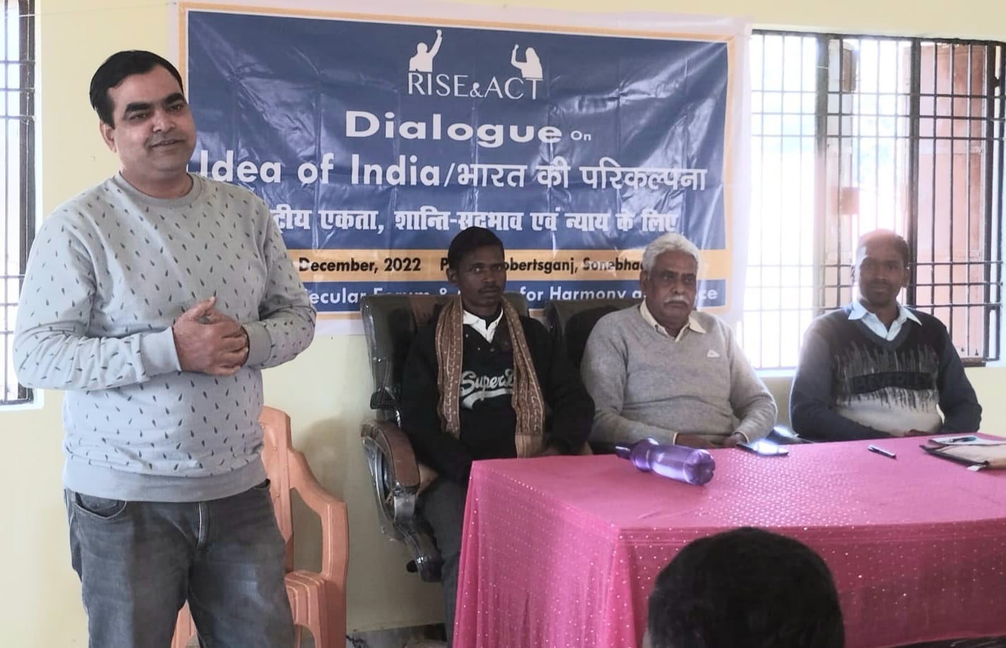 बहुआर,सोनभद्र- सोनभद्र के रॉबर्ट्सगंज ब्लॉक के बहुआर में आज राइज एंड एक्ट के तहत सेंटर फॉर हार्मोनी एंड पीस द्वारा भारत की परिकल्पना और आदिवासी समाज पर परिचर्चा का आयोजन किया गया। जिसमे आदिवासी जीवन और उनकी संस्कृति की चर्चा की गई।