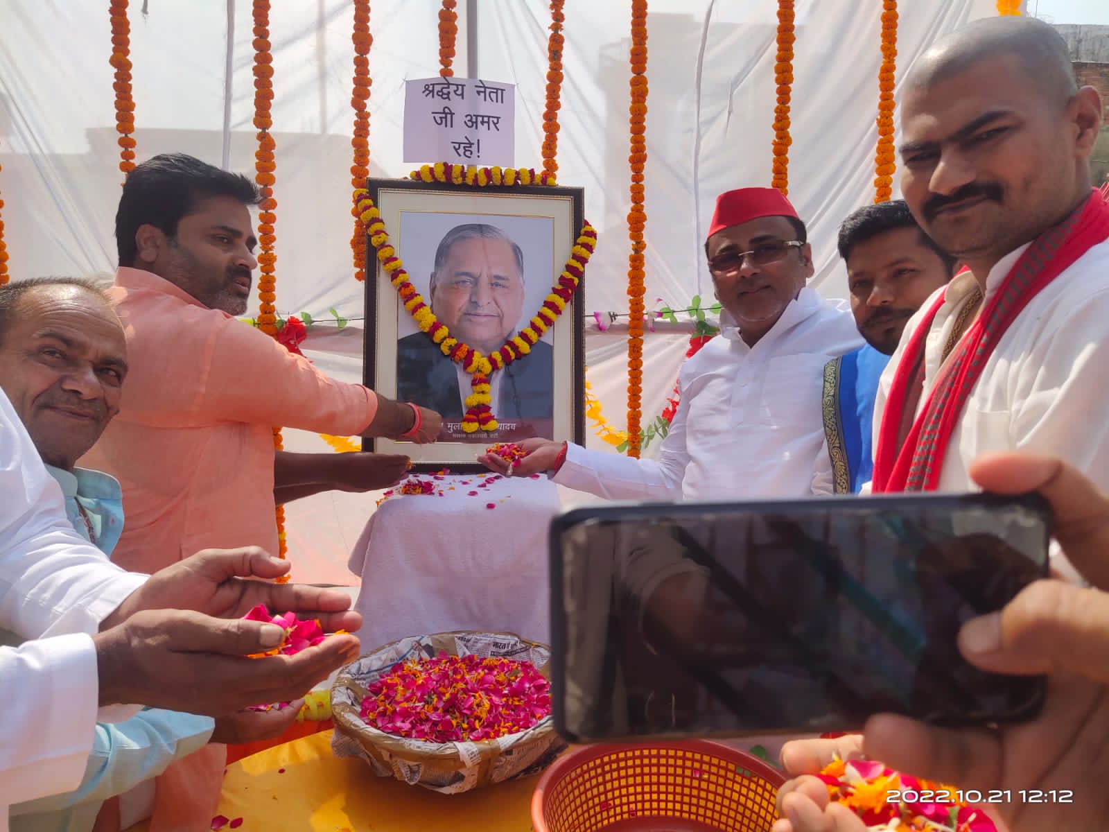 बहराइच (राष्ट्र की परम्परा)पयागपुर।समाजवादी पार्टी के संस्थापक संरक्षक व पूर्व मुख्यमंत्री मुलायमसिंह यादव चित्रों पर,श्रद्धांजलि सभाका आयोजन पूर्व विधायक पयागपुर मुकेश श्रीवास्तव के आवास पर आयोजित किया गया। इस दौरान पूर्व विधायक मुकेश श्रीवास्तव ने कहां में कि उनके जैसा नेता ना कोई हुआ है। और ना कोई होगा। दलगत राजनीति से ऊपर उठकर समाज के हर वर्ग के लिए कार्य किया। उनके निधन की भरपाई नहीं की जा सकती है। पूर्व जिला पंचायत सदस्य रामजी यादव ने मुलायम सिंह यादव को श्रद्धांजलि अर्पित करते हुए उन्हें एक कर्मठ नेता बताया ,मालिक राम शर्मा, ने कहा कि ऐसे राजनेता थे जो दलीय राजनीति से ऊपर थे, पूर्व एमएलसी प्रत्याशी बालेंद्र प्रताप उर्फ विपिन श्रीवास्तव ने कहा कि नेताजी हम सभी के लिए सम्मान एवं आदर के पात्र थे ,उनके जाने से देश और प्रदेश की राजनीतिक जगत की एक अपूरणीय क्षति हुई है, उन्होंने कहा कि वह एक प्रखर एवं तेजस्वी नेता थे, वह दबे कुचले किसानों और गरीबों की आवाज उठाने वाले तथा उनके हितों के लिए निरंतर संघर्ष करने वाले नेता थे। उन्होंने कहा कि मेरा व्यक्तिगत रूप से भी उनके प्रति आदर भाव था ईश्वर उनकी आत्मा को सद्गति प्रदान करें एवं अपने श्री चरणों में स्थान दे श्रद्धांजलि सभा में पंकज सिंह, सैनिक प्रकोष्ठ अध्यक्ष, सदानंद शुक्ला, दिनेश शुक्ला, रमेश मिश्रा, राम सुरेश यादव, कमल निगम ,एजाज खान, सत्य प्रकाश त्रिपाठी पूर्व जिला पंचायत सदस्य ,सहित सैकड़ों सपाकार्यकर्ता उपस्थित थे।