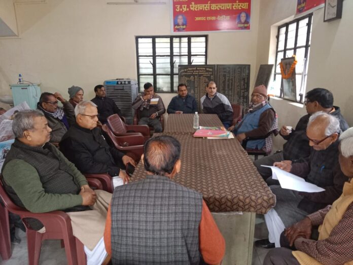 देवरिया (राष्ट्र की परम्परा डेस्क)कलेक्ट्रेट परिसर स्थित पेंशनर्स भवन में शनिवार, 31 जनवरी 2026 को अपराह्न समय उत्तर प्रदेश पेंशनर्स कल्याण संस्था, जनपद देवरिया एवं कोषागार अधिकारी-कार्मिक की एक महत्वपूर्ण संयुक्त बैठक आयोजित की गई। बैठक का उद्देश्य पेंशनर्स से जुड़े विषयों पर संवाद स्थापित करना एवं समन्वय को और सुदृढ़ बनाना रहा।