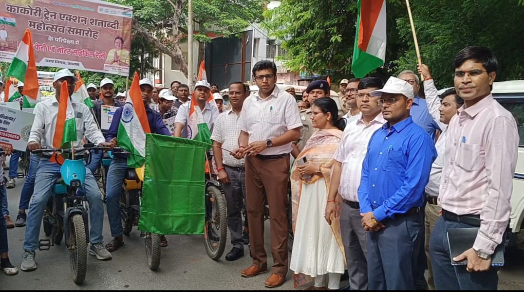 आगरा (राष्ट्र की परम्परा)। काकोरी ट्रेन एक्शन शताब्दी समापन समारोह जनपद में भव्य तरीके से मनाया गया। विधायक डॉ. जीएस धर्मेश व जिलाधिकारी अरविंद मल्लप्पा बंगारी ने विकास भवन से तिरंगा प्रभात फेरी व मोटरसाइकिल रैली को हरी झंडी दिखाकर रवाना किया। रैली शहीद स्मारक पहुंची, जहां अमर शहीदों की प्रतिमाओं पर माल्यार्पण, पुष्पांजलि और वृक्षारोपण किया गया।