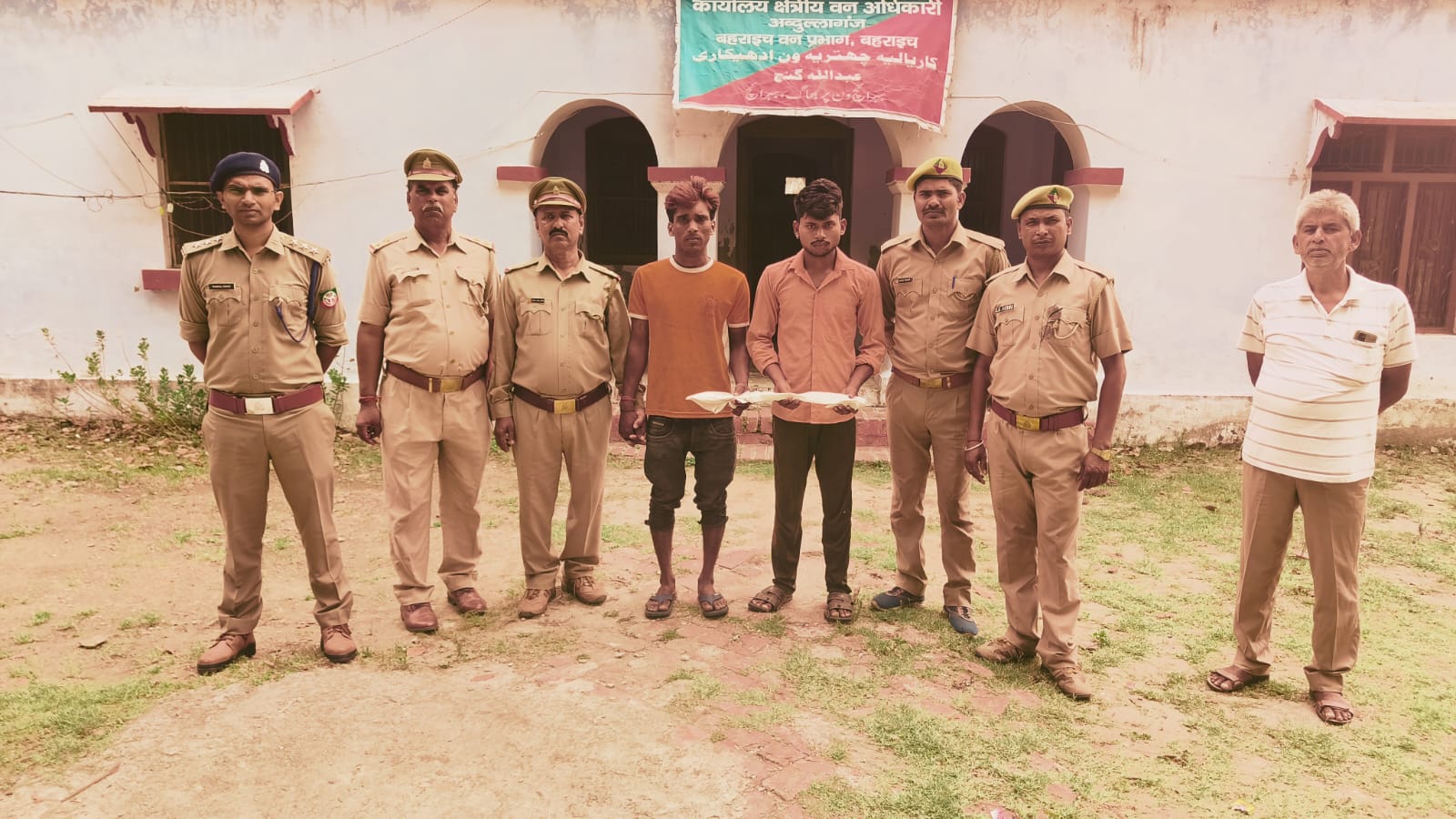 बहराइच (राष्ट्र की परम्परा) । नेपाल सीमा से सटे अब्दुल्लागंज वन क्षेत्र में अवैध कटान करने के दौरान दो नेपाली नागरिकों को वन विभाग की टीम ने गिरफ्तार कर लिया है, और दो लोग मौके से भाग निकले । मौके पर पकड़े गए दो अभियुक्तों को वन अधिनियम के अंतर्गत न्यायालय पर पेश किया गया। इनके पास है अवैध रूप से काटे गए साल के वृक्ष के पांच बोटा लकड़ी बरामद हुई है। वन क्षेत्राधिकारी अब्दुल्लागंज पंकज साहू ने बताया कि अवैध कटान करने वाले वनवासियों की जगह सीधे जेल होगी। और कहा की वन दरोगा शंभू कुमार , वन दरोगा व रमेश चंद्र खन्ना , वन रक्षक मनोज तिवारी, सुरेश वर्मा सहित टीम के साथ वन क्षेत्र में अवैध कटान पर अंकुश लगाने के लिए भ्रमण कर रहे थे। इस दौरान सीमा क्षेत्र से लगी वन वीक में नवाबगंज क्षेत्र के फुल टकरा गांव निवासी कमलेश और तिवारी अवैध रूप से साल का पेड़ काट रहे थे। यही नहीं इन लोगों ने पेड़ काटने के बाद उसका बोटा भी बना लिया था। जिसे अपने सहयोगी यों के माध्यम से ले जाने की फिराक में थे। तभी मौके पर पहुंच कर दोनों लोगों को कटान करने के दौरान गिरफ्तार कर लिया गया और अवैध रूप से काटी गई लकड़ी बरामद कर ली गई। इसके बाद दोनों को वन अधिनियम के अंतर्गत न्यायालय पर पेश किया गया है।