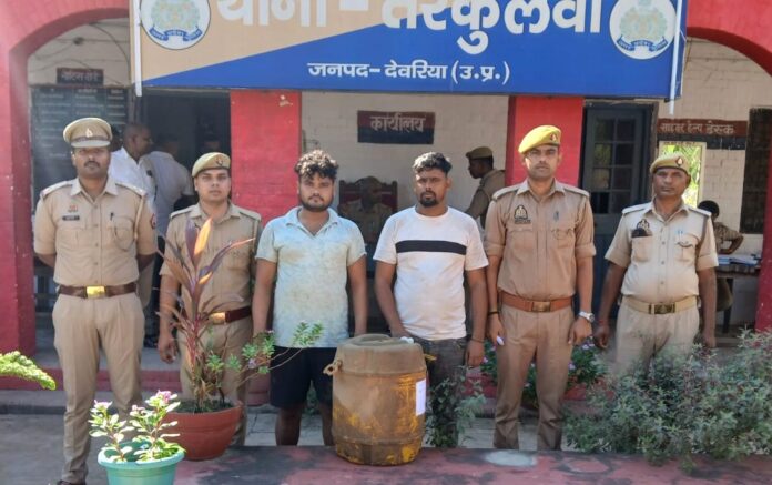 देवरिया (राष्ट्र की परम्परा)। थाना तरकुलवा पुलिस ने डीजल चोरी करने वाले दो आरोपितों को गिरफ्तार कर उनके पास से 30 लीटर डीजल बरामद किया है। एक अन्य आरोपित की तलाश जारी है।पुलिस अधीक्षक संजीव सुमन के निर्देशन में, अपर पुलिस अधीक्षक उत्तरी आनन्द कुमार पाण्डेय और क्षेत्राधिकारी नगर संजय कुमार रेड्डी के पर्यवेक्षण में यह कार्रवाई की गई। गिरफ्तार अभियुक्तों में राहुल पासवान पुत्र नगीना पासवान निवासी पासी टोला रामपुर कारखाना तथा प्रदुम्न यादव पुत्र चन्द्रिका यादव निवासी रामपुर कारखाना, थाना रामपुर कारखाना (जनपद देवरिया) शामिल हैं। दोनों को मुखबिर की सूचना पर इण्डियन आयल पेट्रोल पम्प के पास से चोरी के डीजल के साथ पकड़ा गया।पूछताछ में दोनों ने अपना अपराध स्वीकार करते हुए बताया कि उन्होंने अपने साथी बाबूलाल पासवान निवासी रामनगर कर्जहा (जनपद गोरखपुर) के साथ मिलकर चोरी की वारदात की थी। बाबूलाल की गिरफ्तारी शेष है, जिसके लिए पुलिस टीम दबिश दे रही है।गौरतलब है कि 25 सितंबर को वादी दीपक गुप्ता निवासी बंजरिया ने थाने पर तहरीर देकर अपनी ट्रेलर (संख्या- यूपी 52 बी 1480) से डीजल चोरी होने की सूचना दी थी। इस आधार पर थाना तरकुलवा में मुकदमा पंजीकृत कर विवेचना की गई, जिसमें अभियुक्तों का नाम सामने आया।बरामदगी: एक जरिकेन में 30 लीटर डीजल।गिरफ्तारी करने वाली पुलिस टीम:उपनिरीक्षक शुभम कुमार सिंह उपनिरीक्षक अजहर अब्बास जैदी हेड कांस्टेबल अनिल रैना कांस्टेबल मदन कुमार (थाना तरकुलवा)