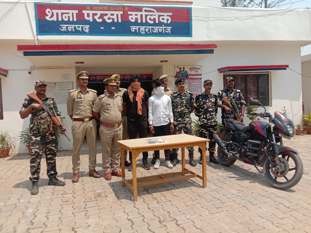 महराजगंज (राष्ट्र की परम्परा)।संयुक्त टीम ने थाना क्षेत्र के सीमावर्ती गांव सेवतरी परसा स्थित एसएसबी रोड कैम्प से पहले मौजूद नहर पुलिया के पास से बाइक सवार दो लोगों को किया गिरफ्तार। परसा मलिक पुलिस स्वाट टीम एसओजी और एसएसबी को बीते बुधवार की देर रात लगभग 11-40 बजे मुखबिर से सूचना प्राप्त हुआ कि एक पल्सर बाइक यूपी 56 ए एन 7842 पर सवार दो लोग हेरोइन लेकर जा रहे हैं। समय रहते घेराबंदी किया जाये तो उन्हें पकड़ा जा सकता है। सूचना पर विश्वास करते हुए सभी उक्त टीमें मुखबिर के बताए हुए स्थान एसएसबी रोड कैम्प मोड़ से पहले नहर पुलिया के पास अंधेरे में बैठकर बाइक चालकों के आने का इन्तजार करने लगे।थोड़ी देर इन्तजार करने के बाद अंधेरे में एक बाइक चालक आते हुए दिखाई दिया जिसे संयुक्त टीम ने रोककर लोगों से पूछ-ताछ करने के बाद दोनों की तलाशी लिया तो सत्यम मद्धेशिया पुत्र संजय मद्धेशिया उम्र 22 वर्ष निवासी जगरनाथ पुर टोला परशुरामपुर के पास से दो पालिथीन में 140 ग्राम हेरोइन वही दूसरे अभियुक्त आशीष पासवान पुत्र महेन्द्र पासवान उम्र 19 वर्ष निवासी जगरनाथ पुर टोला पंडितपुर के पास से 60 ग्राम कुल 200 सौ ग्राम हेरोइन दो अदद एंड्राइड फोन व 480 रुपए भारती नोट संयुक्त टीम ने बरामद किया।वही बरामद हेरोइन की अंतराष्ट्रीय बाजार में कीमत दो करोड़ बताई जा रही है। संयुक्त टीम ने दोनों अभियुक्तों को बाइक के साथ हिरासत में लेकर थाने लाई जिनके विरुद्ध थाना स्थानीय पर मुकदमा अपराध संख्या 72/2024 की धारा 8/22/23 एनडीपीएस एक्ट की कार्यवाही कर दोनों अभियुक्तों को जेल भेज दिया। गिरफ्तार करने वाली टीम में थानाध्यक्ष प्रिंस कुमार, चौकी प्रभारी सेवतरी अमित कुमार सिंह, उपनिरीक्षक आदर्श सिंह, हेड कांस्टेबल अमरजीत कुमार, कांस्टेबल विकास यादव, अनील यादव, उज्ज्वल दीक्षित एसएस बी टीम में एसी सफवान, एनएसआई जीडी अमरजीत सिन्हा, सीटी जीडी अरुण कुमार भारती, सीटी जीडी सोम राय केरकेट्टा, एसओजी टीम प्रभारी महेन्द्र यादव, हेड कांस्टेबल कुतुबुद्दीन, शैलेन्द्र त्रिपाठी, कांस्टेबल हृदय राम यादव, स्वाट टीम प्रभारी उपनिरीक्षक देवेन्द्र सिंह, कांस्टेबल राजबीर पाठक, दीपक सिंह, राजीव यादव मौजूद रहें।