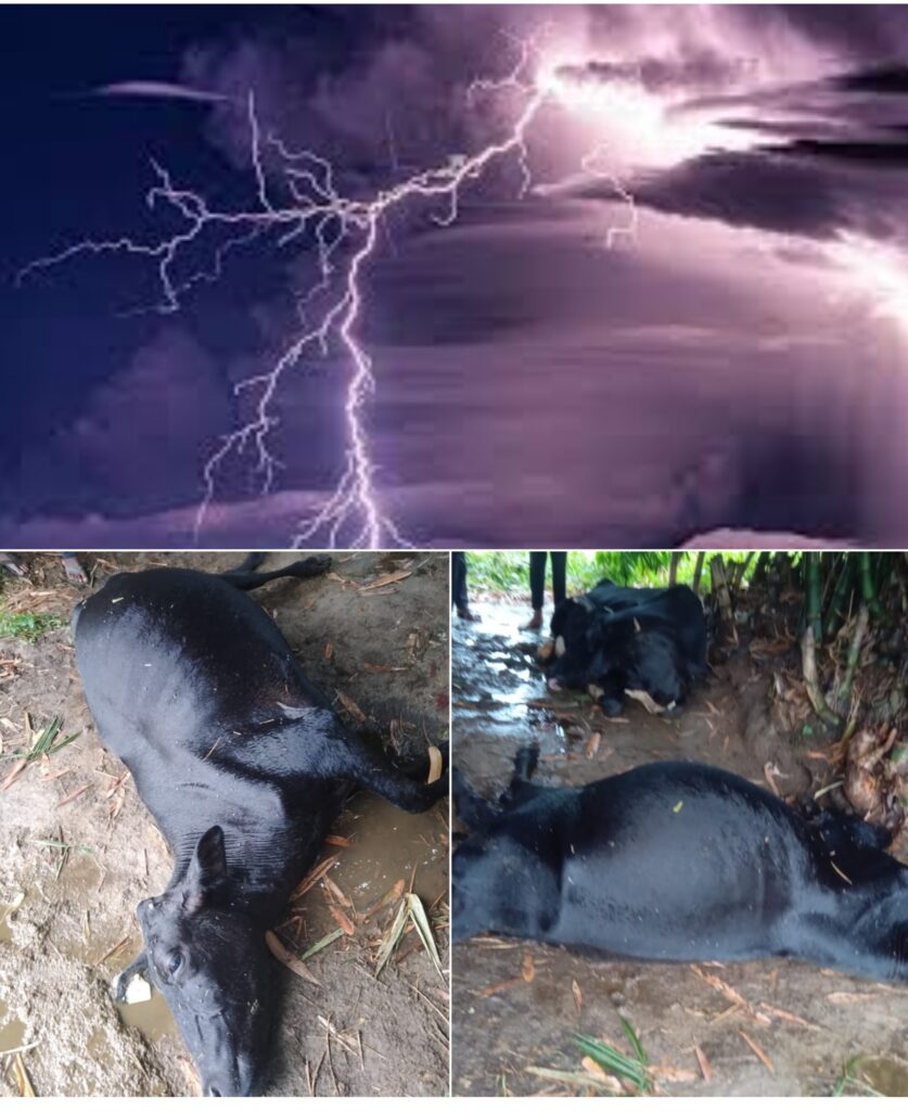 दो अलग अलग जगहों पर आकाशीय बिजली गिरने से एक जगह दो गाय एक जगह एक युवक की मौत