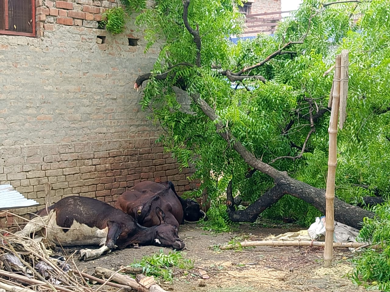 प्राप्त जानकारी के अनुसार ग्राम पिपरा भुल्ली निवासी माया प्रकाश यादव उर्फ मुल्लूर पुत्र स्व चन्द्र देव यादव के घर के पास स्थित डेढ़ सौ साल पुरानी नीम की पेड़ के मंगलवार की देर रात अचानक गिरने से दो गाये दब कर मर गयी, जिसमे एक गाय दूध दे रही थी तो दूसरी गाय बच्चा देने वाली थी।