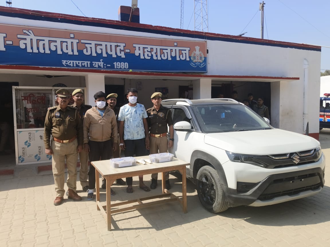 महराजगंज (राष्ट्र की परम्परा)। जिले के नौतनवां सूडीं घाट पर पुलिस मुठभेड में शातिर अभियुक्त गिरफ्तार किये गये जिसमे 20 फरवरी को सुबह लगभग 7.00 बजे बिना नम्बर प्लेट ब्रेजा कार पर सवार चार अज्ञात लोगो द्वारा अजय यादव पुत्र लल्लन यादव निवासी भड़सर खास थाना कप्तानगंज जनपद कुशीनगर को अपनी गाड़ी में बैठाकर उनसे रुपये से भरा बैग छिनकर बाईपास पर उतार दिया गया था। जिसके सम्बन्ध में थाना नौतनवां पर मु0अ0स0-56/2024 धारा 392/342 भादवि पंजीकृत कर इस अभियोग के अनावरण हेतु पुलिस अधीक्षक महराजगंज के निर्देशन व अपर पुलिस अधीक्षक महराजगंज के पर्यवेक्षण में एवं क्षेत्राधिकारी नौतनवां के नेतृत्व में प्रभारी निरीक्षक नौतनवां, थानाध्यक्ष सोनौली, कोल्हुई, बरगदवा, स्वाट व एसओजी की कुल 05 टीमें लगायी गयी थी।पुलिस टीम द्वारा सीसीटीवी फुटेज, सर्विलांस की मदद से अभियुक्तों की गिरफ्तारी एवं घटना के अनावरण हेतु अथक प्रयास किया जा रहा था जिसमें मुखबिर की सूचना पर बुधवार को समय लगभग 2.30 बजे रात्रि इस अभियोग से सम्बन्धित अभियुक्त निरंजन पुत्र किरन शंकर सिंह निवासी नन्दा नगर थाना एम्स जनपद गोरखपुर एवं बाबू सिंह पुत्र उग्रसेन सिंह निवासी परसिया जदू थाना सुरौली जनपद देवरिया के साथ एसएसबी रोड पर पुलिस टीम से मुठभेड़ हुई जिसमें अभियुक्त निरंजन के पास से लूट का 08 लाख रुपये व अभियुक्त बाबू सिंह के पास से 07 लाख 88 हजार रुपये अर्थात कुल 15 लाख 88 हजार रुपये व वादी का लूटा गया आधार कार्ड, लूट में प्रयोग की गई बिना नम्बर प्लेट की ब्रेजा कार, 02 अदद तमन्चा 315 बोर, 03 अदद खोखा 315 बोर तथा एक जिन्दा कारतूस 315 बोर बरामद हुआ। घायलों को ईलाज हेतु सीएचसी रतनपुर भेजा गया है। अन्य विधिक कार्यवाही की जा रही है।पुलिस पूछताछ मे यह खुलासा हुआ कि मुखबिर की सूचना पर 20फरवरी को कस्बा नौतनवा में लूट करने वाले बिना नंबर वाली ब्रेजा कार नौतनवा बाईपास पर गैस गोदाम होते हुए एसएसबी रोड पर नेपाल की तरफ जाने वाली है इसकी सूचना मुखबिर द्वारा दी गई इस सूचना पर थानाध्यक्ष बरगदवां मय हमराही पुलिस बल तथा थानाध्यक्ष कोल्हुई मय हमराह पुलिस बल के साथ बनैलिया माता मंदिर चौराहे पर सुंडी के पास एसएसबी रोड पर पहुंचकर आने जाने वाले व्यक्तियों की चेकिंग करने लगे। रात में करीब लगभग 2:00 बजे एक ब्रेजा कार बिना नंबर की बनैलियां माता मंदिर चौराहे से आई तो रोकने का इशारा किया गया तो वह तेजी से खनुआं की तरफ निकल गई जिस पर प्रभारी निरीक्षक नौतनवां के नेतृत्व में बनी टीम बनैलिया माता मंदिर चौराहे पर कार का तेजी से पीछा करते हुए इसकी सूचना कंट्रोल रूम को दे दी गई उक्त सूचना पर सभी टीमों द्वारा घेराबंदी करते हुए अभियुक्त की गाड़ी को आगे – पीछे से घेर लिया गया। जहां पर अभियुक्तों द्वारा 