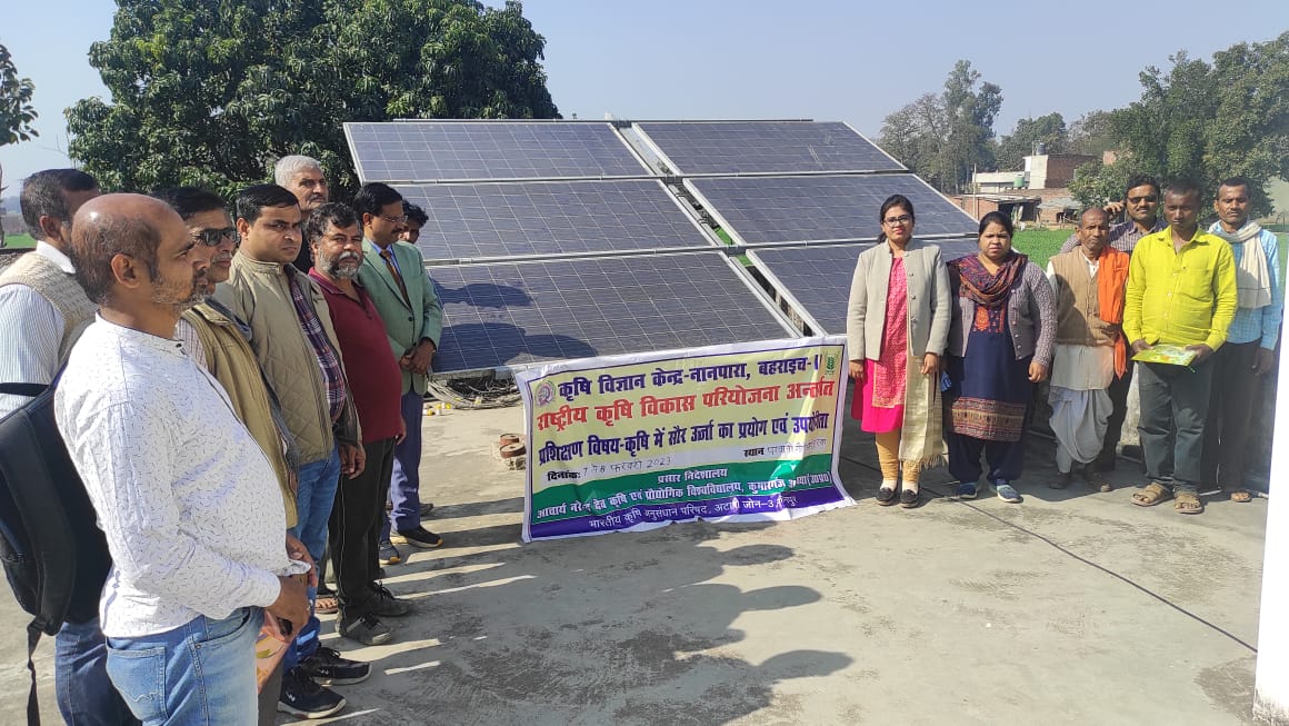 बहराइच (राष्ट्र की परम्परा)l जनपद के नानपारा कृषि विज्ञान केंन्द्र द्वारा गाँव परवानी गौड़ी विकास खंड मिहींपुरवा में राष्ट्रीय कृषि विकास परियोजनान्तार्गत “कृषि में सौर ऊर्जा का प्रयोग एवं उपयोगिता” विषयक दो दिवसीय कृषक प्रशिक्षण आयोजित किया गया l जिस की अध्यक्षता केंद्र के वरिष्ठ वैज्ञानिक एवं अध्यक्ष डॉ. के. एम. सिंह ने की। उन्होंने बताया की सिंचाई खेती के लिए लाइफलाइन की तरह होती हैlऐसे में सिंचाई के पम्प किसी वरदान से कम नहीं हैं। किसानों के लिए अधिक आर्थिक लागत परेशानी का कारण बनती है लिहाजा बिजली या महंगे ईंधन चलित पारम्परिक कृषि पम्प की अपेक्षा सौर ऊर्जा चलित कृषि पम्प किसानों के लिए बेहद मददगार है। उन्होंने कृषि में इस्तेमाल होने वाले उपकरण जैसे सोलर पंपिंग सिस्टम, सोलर क्रॉप ड्रायर, सोलर स्प्रेयर एवं सौर ऊर्जा से संचालित ट्रैक्टर आदि की विस्तार से जानकारी दी। केंद्र की गृह वैज्ञानिक रेनू आर्या ने ग्रामीण क्षेत्र की महिलाओं द्वारा उनके दैनिक उपयोग में सौर ऊर्जा संचालित यंत्रो जैसे सोलर कुकर, सोलर लाइट, सौर पानी गर्म करने की मशीन इत्यादी की विस्तृत जानकारी दी। उन्होंने बताया कि सोलर कुकिंग यंत्र सूर्य की किरणों का उपयोग करके भोजन बनाने का काम करता हैं। सौर ऊर्जा के दैनिक जीवन में उपभोग करने के नयें नयें तरीके खोजे जा रहे हैं। जिससे ग्रामीण क्षेत्र की महिलाओं के बेहतर स्वास्थ्य एवं कार्य में वृद्धि के लिए उपयोगी बनाया । डॉ. हर्षिता ने केंद्र सरकार की सौर पम्प योजना अर्थात कुसुम योजना के बारे मेंं विस्तृत चर्चा की जिसमें उन्होंने बताया कि इस योजना में किसान कुल लागत का मात्र 10 प्रतिशत भुगतान कर अपनी आवश्यकता के अनुसार सोलर प्लांट लगा सकते हैं जहाँ केंद्र सरकार और राज्य सरकार 30-30 प्रतिशत की सब्सिडी प्रदान करेंगे साथ ही 30 प्रतिशत तक ऋण की सुविधा बैंकों द्वारा दी जाएगी। डॉ. अरुण कुमार ने बताया की सौर ऊर्जा के उपयोग वाले कृषि पम्प से किसानों को कई प्रकार की सुविधाएं मिली हैं। लिहाजा सरकारें भी अपने-अपने स्तर पर इसके इस्तेमाल को बढ़ावा दे रही हैं। सौर ऊर्जा कृषि पम्प के फायदे जैसे बाहरी ऊर्जा की खपत नहीं,परिचालन लागत का कम होना,आसान और विश्वसनीय,आर्थिक रूप से लाभकारी, पर्यावरण के अनुकूल,पर्याप्त उत्पादकता,स्थापना और स्थानांतरण के बारे में किसानों को अवगत कराया। इस मौके पर शिव शंकर सिंह, राम प्रवेश मौर्या,मनीष कुमार सिंह, सोमवर्धन पाण्डेय, मनोज कुमार तिवारी, नागेंद्र सिंह, केदारनाथ, जनार्दन राय, सलाख खान आदि उपस्थित रहे।