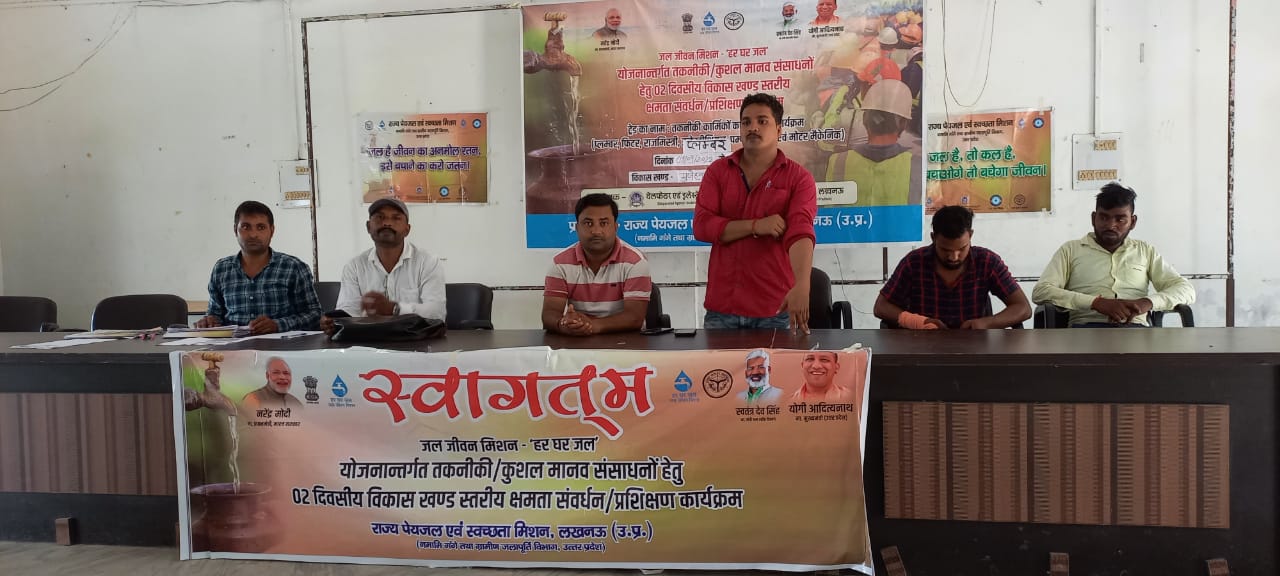 मुज़ेहना के ब्लॉक सभागार में जल जीवन मिशन के तहत तकनीकी कर्मियों का प्लंबर ट्रेड से दो दिवसीय प्रशिक्षण शुरू हुआ प्रशिक्षण के दौरान बताया गया कि हर घर योजना के अंतर्गत गांव में पानी टंकी का निर्माण 2024 तक हर घर जल पहुंचाना है जोकि प्लंबर समुदाय के सहयोग द्वारा पूरा किया ।