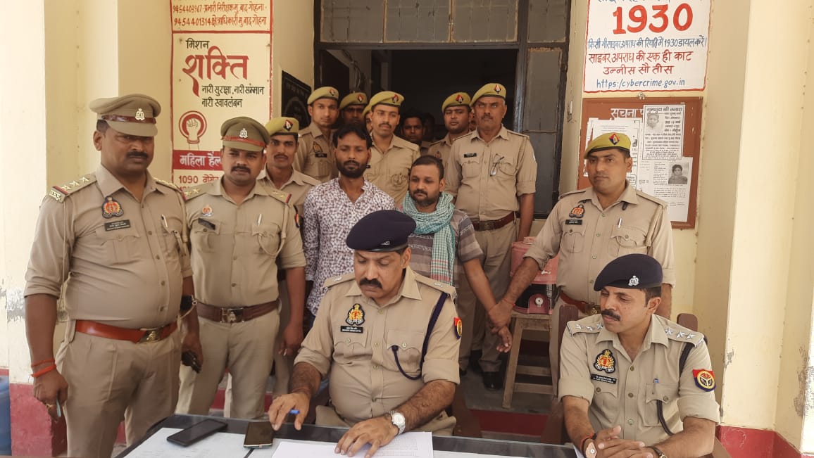 शनिवार को कोतवाली परिसर में आयोजित प्रेस वार्ता में, जनपद के अपर पुलिस अधीक्षक महेश सिंह अत्री ने जानकारी देते हुए बताया कि पुलिस अधीक्षक के निर्देशन पर मुहम्मदाबाद गोहना सर्किल के सीओ डॉक्टर अजय विक्रम सिंह के नेतृत्व में कोतवाली पुलिस शुक्रवार की देर शाम करहा क्षेत्र में चेकिंग कर रही थी कि इसी दौरान मुखबिर ने दो बदमाशों के आने की सूचना दिया। कोतवाल संजय त्रिपाठी के नेतृत्व में पुलिस कर्मियों ने पूर्वांचल एक्सप्रेसवे के निकट सैदपुर अंडर ब्रिज के पास घात लगाया तो शाम लगभग 7.15 बजे भुजही की तरफ से दो बाइक से कुछ लोग आते दिखाई दिए। पुलिस ने रोड पर रुकने का इशारा किया तो बदमाशों ने उसके ऊपर फायर कर दिया। लेकिन पुलिस ने अपना बचाव करते हुए दोनों को पकड़ लिया। पूछताछ में एक ने अपना नाम मनोज चौहान पुत्र शेषनाथ चौहान और दूसरे ने अजय चौहान पुत्र शेषनाथ चौहान बताया। दोनों बदमाश सगे भाई हैं और कोतवाली क्षेत्र के खतिबहा गांव के रहने वाले हैं। पुलिस की तलाशी में बदमाशों के पास से एक अदद 315 बोर का दो अवैध तमंचा और 315 बोर का 32 जिंदा कारतूस, एक 9 एमएम की पिस्टल के साथ 16 कारतूस बरामद किया । इसके साथ ही दोनों बदमाशों के पास से दो झोले में रखे लगभग चार किलोग्राम गांजा भी बरामद हुआ । अपर पुलिस अधीक्षक ने बताया कि गिरफ्तार बदमाश मनोज चौहान ने दो दिन पूर्व बिजली कर्मी कोमल राम के ऊपर डराने की नीयत से हवाई फायर किया था। जिस में पीड़ित की तहरीर के आधार पर संबंधित धाराओं में मुकदमा दर्ज कराया गया है। दोनों बदमाशों ने क्षेत्र में विभिन्न घटनाओं में संलिप्तता स्वीकार किया है। गिरफ्तार करने वाली पुलिस टीम में कोतवाल संजय त्रिपाठी के अलावा उप निरीक्षक आदर्श श्रीवास्तव, कांस्टेबल संदीप यादव, दुर्गा यादव, अखिलेश सिंह, विकास यादव, कल्पनाथ यादव आदि शामिल रहे।