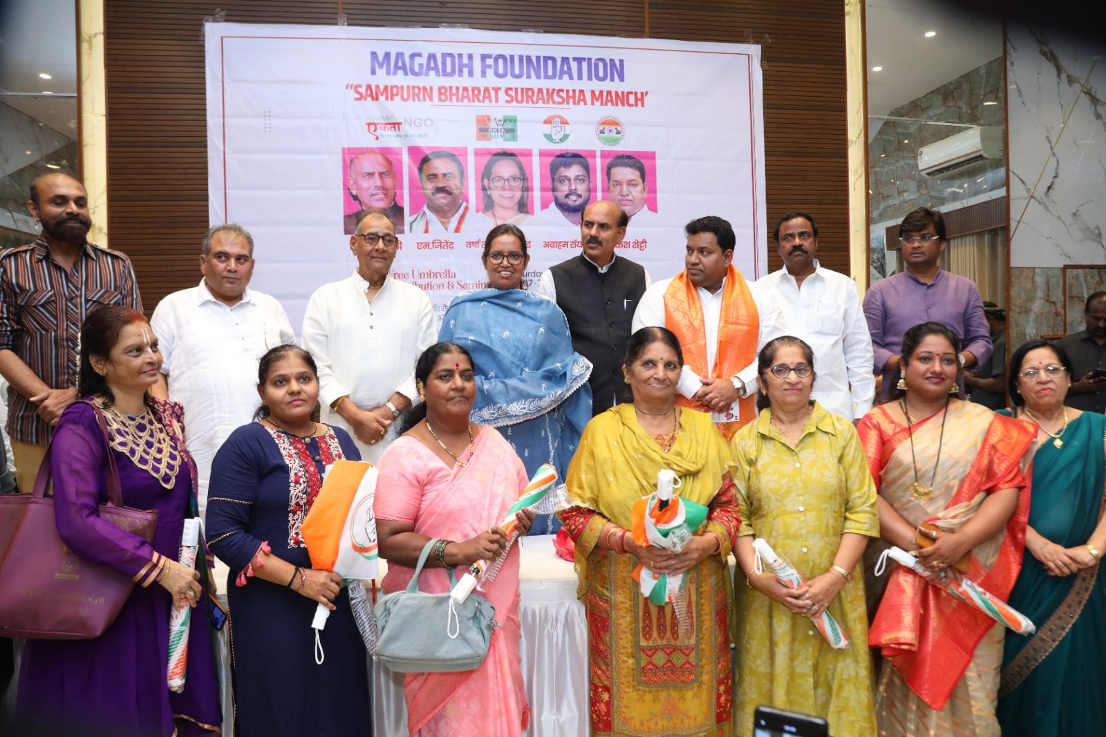 बरसात के मौसम में जहां एक छाता भी किसी ज़रूरतमंद के लिए राहत का साधन बन सकता है, वहीं मुंबई के मुलुंड (पश्चिम) क्षेत्र में एक सराहनीय पहल करते हुए कांग्रेस प्रवक्ता राकेश शेट्टी द्वारा जरूरतमंद नागरिकों को निःशुल्क छाते वितरित किए गए। यह आयोजन जी.एस. शेट्टी ग्रैंड सेंट्रल हॉल में सामाजिक संस्था ‘एकता – द पॉवर ऑफ यूथ एंड यूनिटी’ एवं मगध फाउंडेशन के संयुक्त तत्वावधान में सम्पूर्ण भारत सुरक्षा मंच के अंतर्गत किया गया।