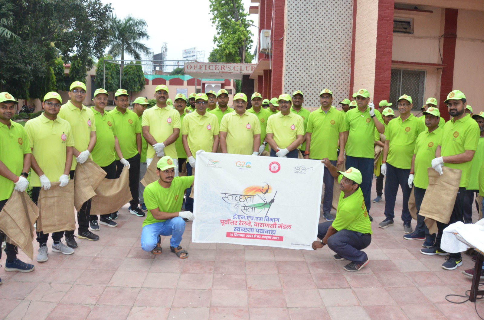 मंडल रेल प्रबंधक विनीत कुमार श्रीवास्तव के निर्देशन में वाराणसी मंडल पर 16 सितम्बर से 02 अक्टूबर,2023 तक चलाये जा रहे “स्वच्छता पखवाड़ा” में शुक्रवार 22 सितंबर,2023 को जागरूकता अभियान के अंतर्गत मंडल रेल प्रबंधक विनीत कुमार श्रीवास्तव अध्यक्षता में प्रातः प्लेगोथान स्वच्छता रैली निकाली गयी जो ” पुराने अधिकारी क्लब ” से चलकर आफिसर कालोनी एवं रेलवे कॉलोनी में सफाई कार्यक्रम संपन्न करते हुए, नए अधिकारी क्लब पर समाप्त हुई | इसी क्रम में मंडल रेल प्रबंधक की अध्यक्षता में शुक्रवार 22 सितम्बर को रेल अधिकारीयों एवं कर्मचारियों को स्वच्छता के प्रति जागरूक करने के उद्देश्य से सुबह 08.00 बजे आफिसर क्लब में स्वच्छता शपथ ग्रहण कर, प्लेगोथान स्वच्छता रैली अपनी सहभागिता दर्ज कराई ।