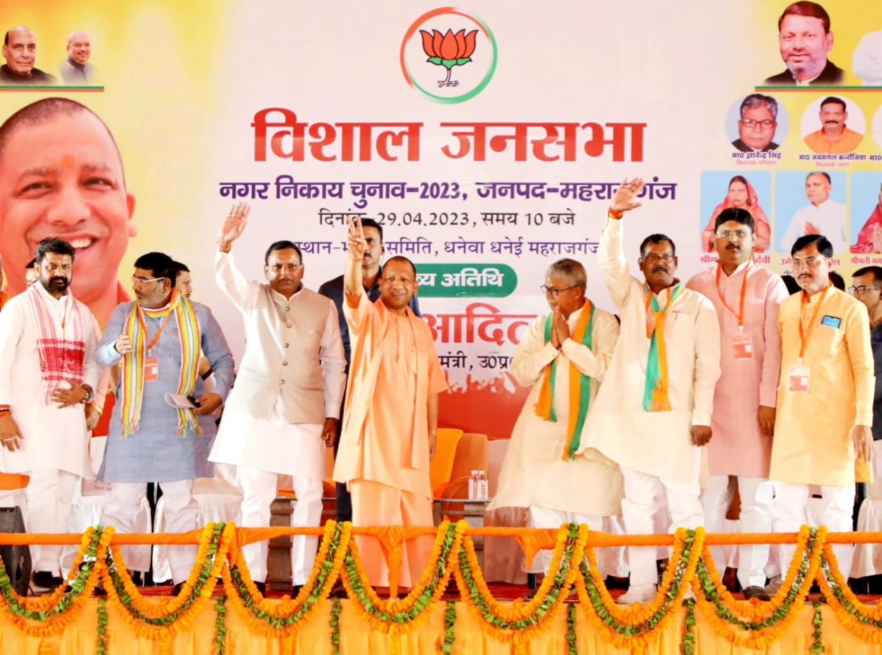 मुख्यमंत्री शनिवार को महराजगंज स्थित नवीन मंडी परिसर में नगर निकाय चुनाव के लिए आयोजित जनसभा को संबोधित कर रहे थे।