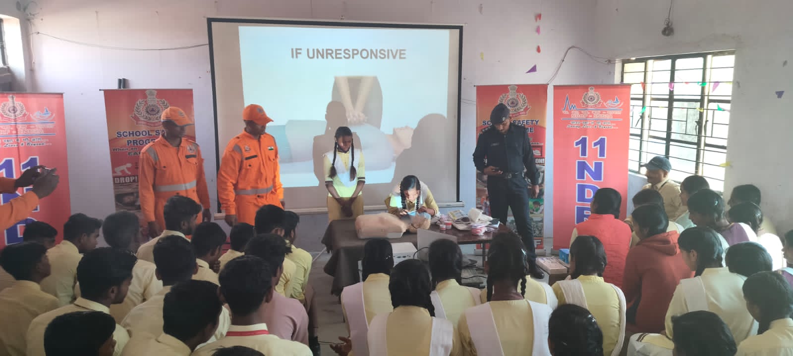 आपदा प्रबंधन एक दिवसीय कार्यक्रम के अंतर्गत बताया गया कि भूकंप आने पर स्कूल के बच्चों को क्या कार्रवाई करनी चाहिए आपदा के दौरान घायल व्यक्तियों को अस्पताल से पूर्व चिकित्सा के बारे में बताया गया और साथ ही इन आपदाओं में प्रयोग होने वाली बचाव तकनीक, फंसे हुए लोगों को निकालने एवं उन्हें प्राथमिक उपचार देने के बारे में बताया गया।
