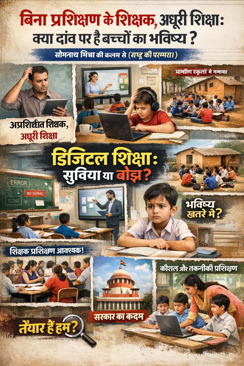 देश की शिक्षा व्यवस्था तेजी से डिजिटल युग में प्रवेश कर चुकी है। स्मार्ट क्लासरूम, ऑनलाइन प्लेटफॉर्म, ई-कंटेंट और वर्चुअल पढ़ाई अब शिक्षा का अहम हिस्सा बन चुके हैं। लेकिन इस डिजिटल बदलाव के बीच एक गंभीर सवाल उभरकर सामने आ रहा है—क्या बिना समुचित प्रशिक्षण के पढ़ा रहे शिक्षक बच्चों के भविष्य के साथ न्याय कर पा रहे हैं?