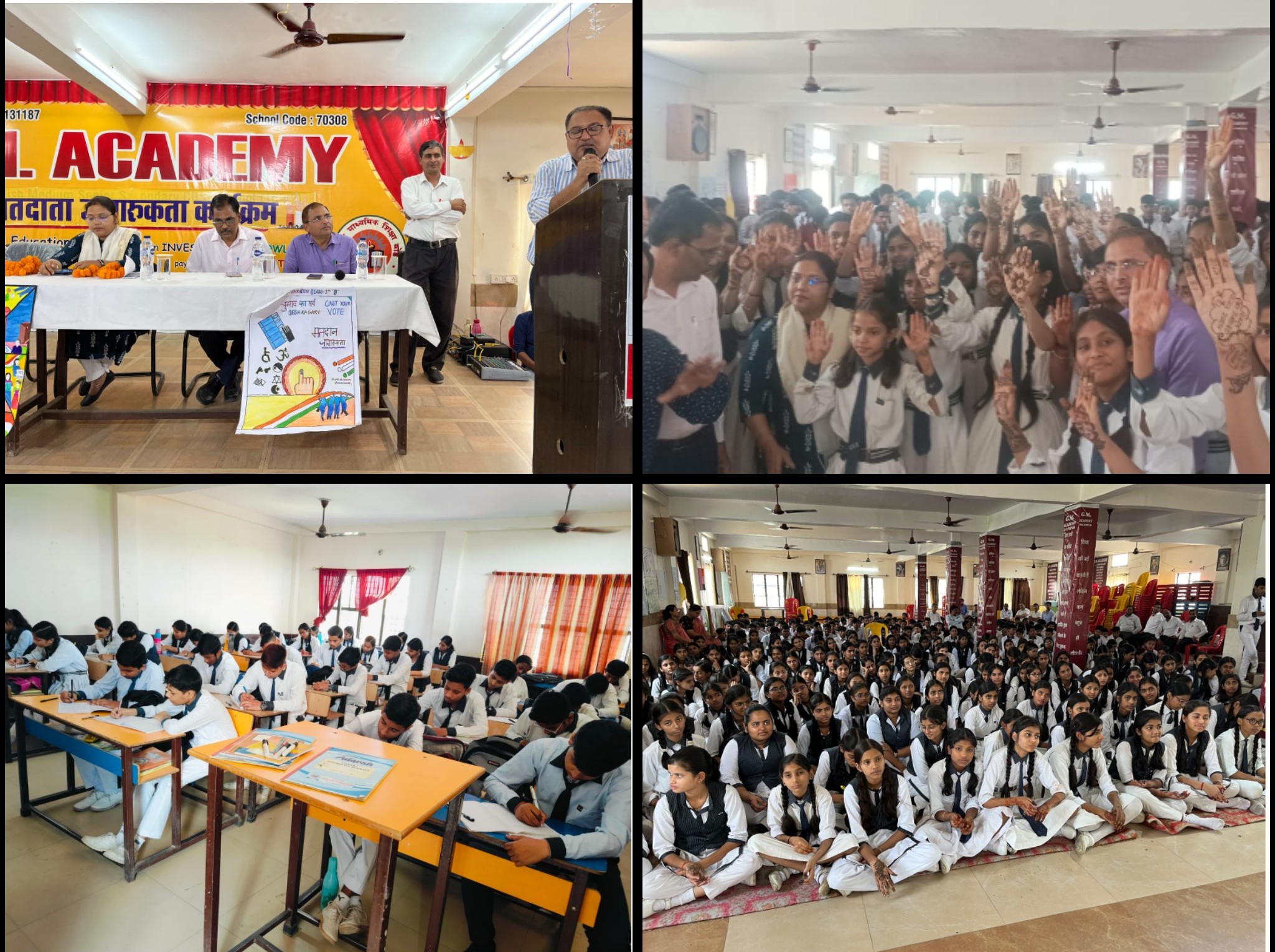 नगर के जी एम एकेडमी सीनियर सेकेंडरी स्कूल में आगामी लोकसभा चुनाव को देखते हुए मतदाता जागरूकता कार्यक्रम का आयोजन हुआ, जिसमे विद्यालय के आठवीं से बारहवीं के बच्चों ने बढ़ चढ़कर हिस्सा लिया। कार्यक्रम में बच्चो ने मतदाता जागरूकता पर अत्याकर्षक रंगोली, बहुत सुंदर मेहंदी, विचारपरक निबंध, अनेकों प्रकार के मनमोहक स्लोगन एवं पेंटिंग प्रस्तुत किए। सलेमपुर के उपजिलाधिकारी गिरीश झाँ ने मतदाता जागरूकता कार्यक्रम के अंतर्गत उपस्थित सभी छात्र छात्राओं, अध्यापक एवं अध्यापिकाओं को मतदाता के प्रभाव, एवं राष्ट्र में मतों का महत्व पर अपने विचार प्रस्तुत करते हुए निष्पक्ष एवं जाति, धर्म, वर्ग, संप्रदाय आदि से ऊपर उठकर मतदान करने की सपथ दिलाई। तहसीलदार अलका सिंह ने मतदान के महत्त्व पर बड़ा ही रोचक प्रकाश डाला। खंड शिक्षा अधिकारी आर पी राम ने एक एक मत के महत्व पर अपना स्पष्टीकरण व्यक्त किया। नायब तहसीलदार गोपाल जी ने एवं स्वीप नोडल चंदन गुप्ता ने सभी बच्चों को लोकतंत्र का महत्व समझते हुए अधिकतम मतदान की अपील की।