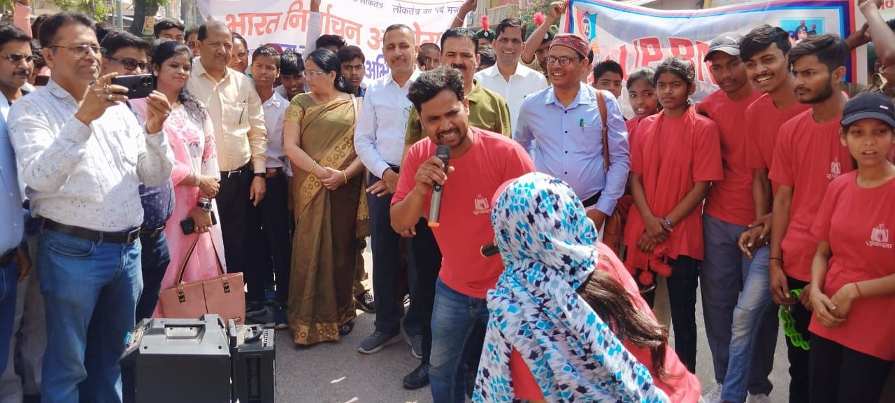 बांगी बलिया की पहचान, हो शत प्रतिशत मतदान के गुंजते नारो के साथ सतीश चन्द्र डिग्री कालेज, लक्ष्मी राज देवी इ0का0 गुलाब देवी बालिका डिग्री कालेज, गुलाब देवी बालिका इण्टर कालेज, राजकीय इण्टर कालेज एवं बेसिक शिक्षा विभाग के छात्र/छात्राओं द्वारा निकाली गयी, मतदाता जागरूकता रैली के बाद गुलाब देवी डिग्री कालेज एवं बालेश्वर मन्दिर के तिराहे पर संकल्प संस्था के वालेंटियर्स द्वारा “पहले मतदान फिर कन्यादान” नुक्कड नाटक की प्रस्तुत करते हुए बलिया नगर के जनमानस को लोक सभा निर्वाचन 2024 में मतदान दिवस 01 जून 2024 को अधिक से अधिक मतदान हेतु प्रेरित किया गया। इस अवसर पर रमेश सिंह, जिला विद्यालय निरीक्षक/स्वीप नोडल प्रभारी ने बताया कि जिलाधिकारी /जिला निर्वाचन अधिकारी रवीन्द्र कुमार के दिशा निर्देश में जनपद में मतदान का प्रतिशत बढ़ाने हेतु विभिन्न