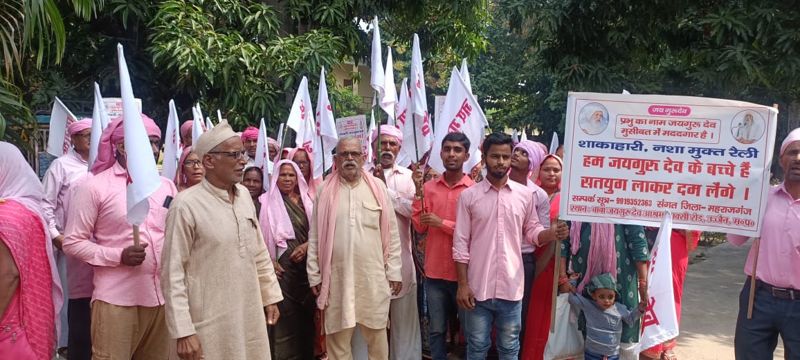 उन्होंने कहा कि देश में यह अभियान मंडलों में बटे हुए जय गुरुदेव के अनुयायियों द्वारा निकाला जा रहा है जिसका उद्देश्य समाज में शाकाहार का प्रचार प्रसार एवं सभी जीवो के प्रति दया का भाव, समाज में व्याप्त कुरीतियों से समाज को मुक्त करने का संकल्प है। इस दौरान मुख्य रूप से डॉ बलराम भट्ट, राजस्थान के अनुयाई हरिराम मित्तल,जय गुरुदेव संगत के महराजगंज के अध्यक्ष रामाज्ञा वर्मा, महामंत्री छेदी चौधरी, कोषाध्यक्ष जगदीश चौधरी, त्रिभुवन वर्मा, किशुन, श्रीकांत,सूर्यबली, बैजनाथ वर्मा,सुशील सिंह, विजय बहादुर शर्मा, मदन पांडेय,मेवा लाल चौहान, रामाश्रय निषाद, योगेंद्र पासवान, लक्ष्मण गौंड़, रामचंद्र विश्वकर्मा, दालसिंगार यादव, देवनारायण वर्मा सहित सैकड़ो की संख्या में लोग उपस्थित रहें।
