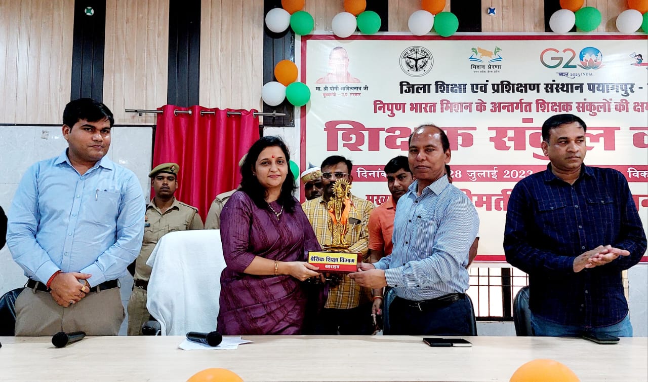 बहराइच (राष्ट्र की परम्परा)। निपुण भारत मिशन के अन्तर्गत शिक्षक संकुलों की क्षमता संवर्ध्दन के उद्देश्य से जिला शिक्षा एवं प्रशिक्षण संस्थान पयागपुर के तत्वावधान में, विकास खण्ड चित्तौरा के सभागार में आयोजित तीन दिवसीय शिक्षक संकुल कार्यशाला का मुख्य अतिथि जिलाधिकारी मोनिका रानी ने दीप प्रज्ज्वलित कर शुभारम्भ किया।