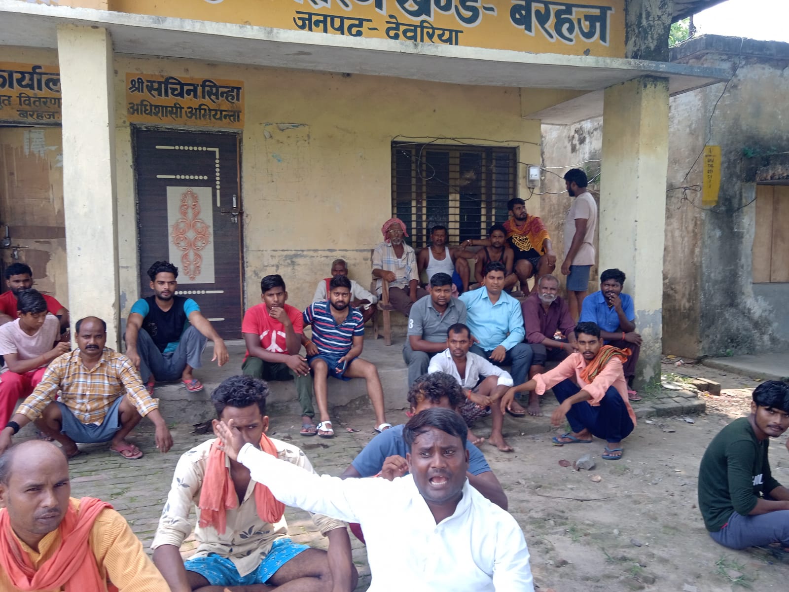 मंगलवार को जयनगर बरहज की गुस्सायी जनता ने ट्रांसफार्मर न लगने पर विधुत वितरण उपखण्ड बरहज में किया प्रदर्शन ।जयनगर के गुस्साए लोगों ने विधुत वितरण उपखंड पर पहुंच कर अवर अभियंता एवं अधिशासी अभियंता के खिलाफ मुर्दाबाद के नारे लगाये।