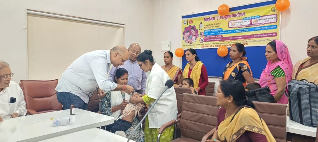 मऊ (राष्ट्र की परम्परा)। बुधवार को मुख्य चिकित्सा अधिकारी कार्यालय सभागार में विटामिन ‘ए’ सम्पूरण अभियान का शुभारंभ किया गया। अभियान का उद्घाटन सीएमओ डॉ. राहुल सिंह ने स्वयं बच्चों को विटामिन ‘ए’ की खुराक पिलाकर किया। यह विशेष अभियान 9 अगस्त तक चलेगा, जिसके अंतर्गत 9 माह से 5 वर्ष तक के बच्चों को विटामिन ‘ए’ की खुराक दी जाएगी। सीएमओ डॉ. राहुल सिंह ने बताया कि यह विटामिन ‘ए’ खुराक बच्चों को टीकाकरण सत्र स्थलों पर निशुल्क उपलब्ध कराई जा रही है। पहली खुराक 9 माह की उम्र में 1 एमएल, दूसरी खुराक 16 माह पर 2 एमएल और फिर हर 6 महीने में एक खुराक दी जानी है, जो 5 वर्ष की आयु तक दी जाती है।