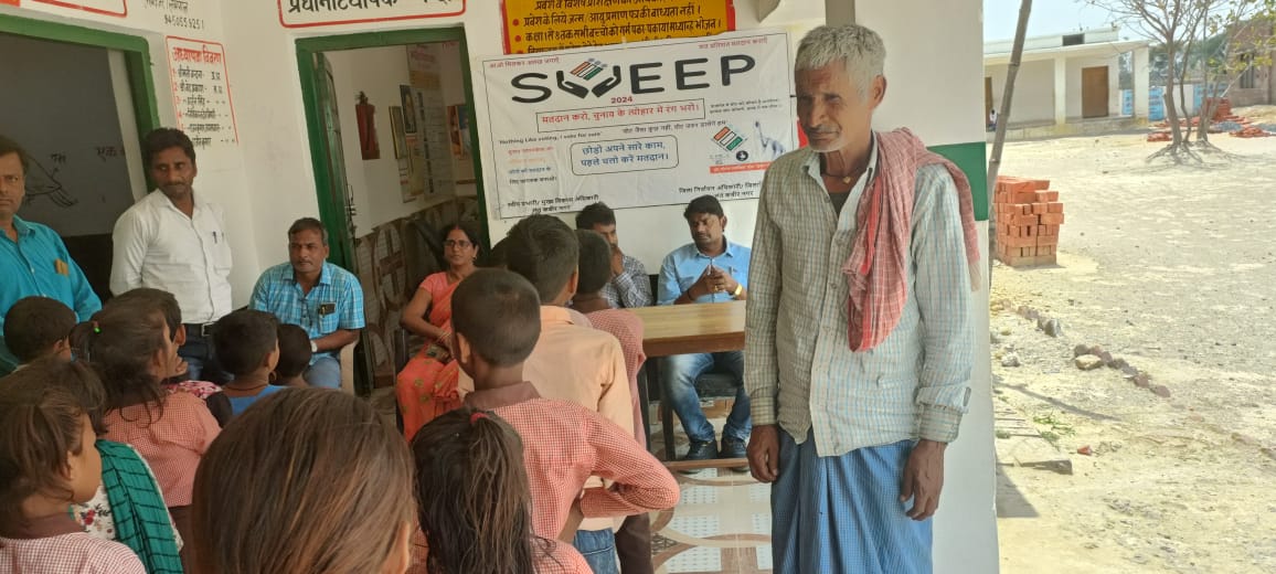 संत कबीर नगर (राष्ट्र की परम्परा)। जिला निर्वाचन अधिकारी/जिला मजिस्ट्रेट महेंद्र सिंह तंवर के निर्देश के क्रम में “व्यवस्थित मतदाता शिक्षा और चुनावी भागीदारी (स्वीप)” कार्यक्रम के अन्तर्गत जिन बूथों पर 50 से 60 प्रतिशत तक मतदान हुये थे उन बूथों के मतदाताओं को जागरुक किये जाने हेतु प्राथमिक विद्यालय की शिक्षकों, सी0डी0पी0ओ0, आगनवाड़ी कार्यकत्री द्वारा विकास खण्ड-खलीलाबाद के ग्राम अनई, दलेलगंज, गड़सरपार, नाहरडीह एवं चन्दहर, विकास खण्ड-सेमरियावां के ग्राम रायपुर छपिया उर्फ ठोका, दशावां, डारीडीहा, चाईकला, अहिरौली द्वितीय एवं गंगैचा विकास खण्ड-बधौली के ग्राम पडोखर, माधोपुर, भक्ठी एवं मकदुमपु विकास खण्ड-मेहदावल के ग्राम नगपुर, श्रीनगर, बढ़या, साड़ेखुर्द, नरायनपुर एवं औरही, विकास खण्ड-सांथा के ग्राम परसा शुक्ल, हरैया, कटया, करमाकला एवं नेतारी कला, विकास खण्ड-बेलहरकला के ग्राम मंझरिया पठान, दुलहीपार एवं भिटिया, विकास खण्ड-नाथनगर के ग्राम अम्मादेई ओनविलायी, अछती, अलीनगर, गायघाट गालिनपुर, गौराखुर्द, गोन्दौरा, गजाघरपुर एवं भिनखिनी खुर्द, विकास खण्ड-हेंसर बाजार के ग्राम गायघाट, गौरंग, भेजनाथपुर, दुहिया खुर्द एवं टुकरौलिया नाइक, संत कबीर नगर में क्षेत्रीय लोक संगीत के माध्यम से मतदाता जागरुकता सम्बन्धी प्रचार- प्रसार किया गया तथा ग्रामीणों को मतदान दिवस दिनांक 25 मई, 2024 को उनके मत के प्रयोग करने हेतु जागरुक किया गया तथा लोकतंत्र में उनकी सहभागिता के महत्व के बारे बताया गया।