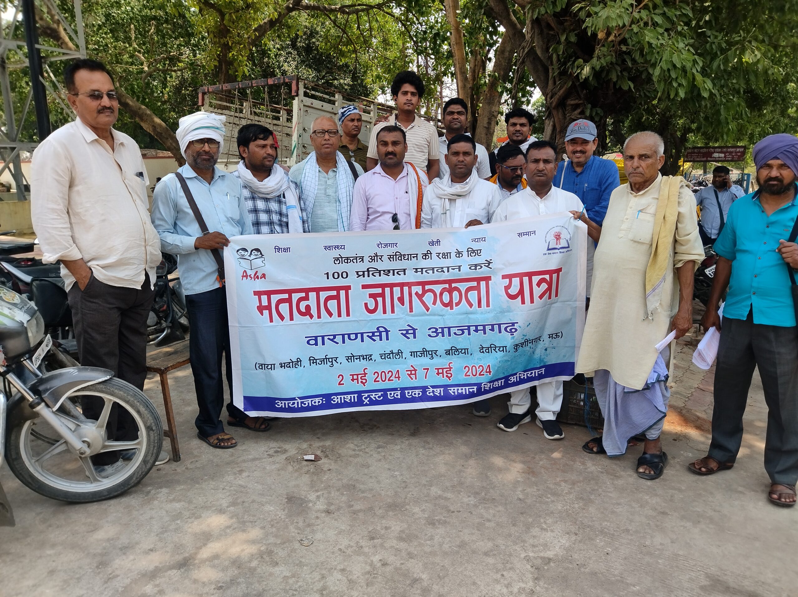 सलेमपुर/देवरिया(राष्ट्र की परम्परा) आशा ट्रस्ट,वाराणसी और एक देश समान शिक्षा अभियान संगठनों के तत्वाधान में मतदाता जागरूकता यात्रा का आयोजन किया जा रहा है जोकि दिनांक 2 मई से शुरू होकर दिनाँक 7 मई 2024 तक जारी रहेगी इस दौरान यह यात्रा वाराणसी,भदोही,मिर्जापुर, सोनभद्र,चंदौली,गाजीपुर,बलिया,देवरिया,कुशीनगर, मऊ, आजमगढ़, में की जाएगी इस संगठन के लोगो द्वारा जिले के विभिन्न रेल्वे स्टेशन और तहसील बस स्टैंड आदि स्थानों पर जाकर नुक्कड़ नाटक के माध्यम से जनता तक यह संदेश पहुंचा रही है की 100 प्रतिशत मतदान सुनिश्चित करे । इस दौरान संगठन के सदस्यो से बात करने पर उन्होंने बताया की लोकतंत्र की बुनियाद मतदाताओं से है क्यों की लोकतंत्र में चुनाव होता है और जनता ही नेता को चुनती है ।जबकि राजतंत्र में ऐसा नहीं होता था राजतंत्र में राजा का बेटा ही राजा होता था ।1947 तक देश पर ब्रिटिश हुकूमत का राज रहा जब 1947 में देश को आजादी मिली और 1950 में संविधान लागू किया गया और जनता का राज कायम किया गया तो जनता का राज कैसे कायम होगा इस लिए देश के हर नागरिक को मतदान करने का अधिकार दिया गया। ऐसा इसलिए किया गया की सरकारें ऐसी चुनी जाए