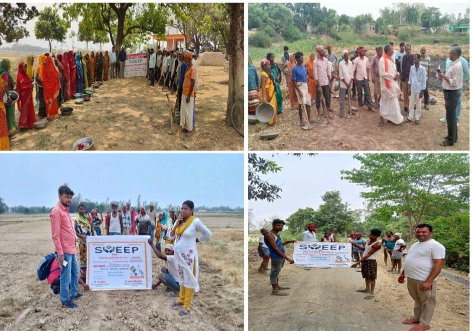 संत कबीर नगर (राष्ट्र की परम्परा)। जिला निर्वाचन अधिकारी/जिला मजिस्ट्रेट महेंद्र सिंह तंवर के निर्देश के क्रम में “व्यवस्थित मतदाता शिक्षा और चुनावी भागीदारी (स्वीप)” कार्यक्रम के अन्तर्गत खण्ड विकास अधिकारी-खलीलाबाद द्वारा ग्राम पंचायत- बयारा, विकास खण्ड-खलीलाबाद एवं खण्ड विकास अधिकारी-सेमरियावां द्वारा ग्राम पंचायत उमिला, विकास खण्ड- सेमरियावां, जनपद-संत कबीर नगर में कार्यस्थल पर मनरेगा मजदूरो को मतदाता जागरुकता कार्यक्रम के माध्यम से मतदान हेतु जागरुक किया गया तथा खण्ड विकास अधिकारी-मेंहदावल द्वारा ग्राम पंचायत-नरायनपुर एवं रानीपुर, विकास खण्ड- मेंहदावल, जनपद-संत कबीर नगर में चुनाव पाठशाला के माध्यम से ग्रामीणों को दिनांक 25 मई, 2024 को उनके मत के प्रयोग करने हेतु जागरुक किया गया तथा लोकतंत्र में उनकी सहभागिता के महत्व के बारे में बताया गया।