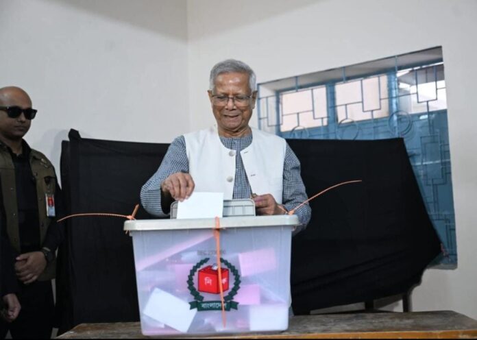 मतदान के दौरान अंतरिम सरकार के प्रमुख मोहम्मद यूनुस ने ढाका के गुलशन इलाके में अपनी बेटी के साथ वोट डाला। उन्होंने कहा कि यह दिन “नए बांग्लादेश” के निर्माण का अवसर हो सकता है। यूनुस के नेतृत्व में अंतरिम सरकार ने करीब 18 महीने पहले सत्ता संभाली थी।
