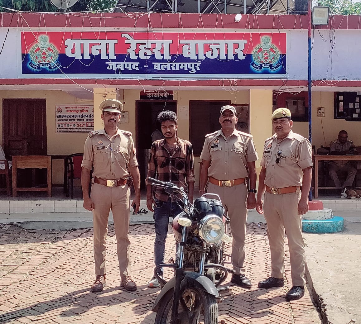 बलरामपुर(राष्ट्र की परम्परा)।पुलिस अधीक्षक बलरामपुर केशव कुमार द्वारा अपराध एवं अपराधियों पर अंकुश लगाए जाने हेतु चलाए जा रहे अभियान के क्रम में अपर पुलिस अधीक्षक नम्रिता श्रीवास्तव व क्षेत्राधिकारी उतरौला ज्योतिश्री के पर्यवेक्षण में तथा प्रभारी निरीक्षक थाना रेहरा बाजार के नेतृत्व मेः- थाना रेहरा बाजार पुलिस टीम द्वारा देखभाल क्षेत्र एवं शांति व्यवस्था व तलाश वाछिंत अभियुक्त के अनुपालन प्रतिक्रिया सूचना अभियान के दौरान थाना स्थानीय पर पंजीकृत मु0अ0सं0 224/23 धारा 379/411 भा0द0वि0 से संबंधित वाँछित अभियुक्त रामकुमार उर्फ गोलू पुत्र रक्षाराम उर्फ खोदे निवासी लोनियन पुरवा थाना रेहरा बाजार बलरामपुर को 01 अदद चोरी की मोटर साइकिल के साथ गिरफ्तारकर न्यायालय भेजा गया ।