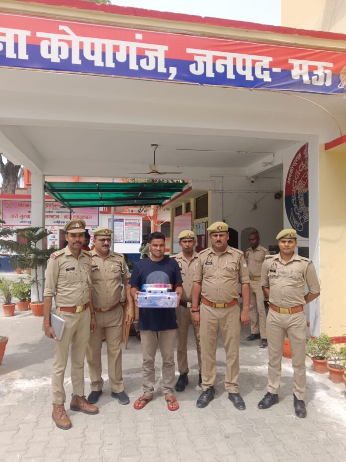 मऊ (राष्ट्र की परम्परा)। जनपद मऊ के थाना कोपागंज पुलिस को एक बड़ी सफलता हाथ लगी है। पुलिस टीम ने वांछित अभियुक्त को गिरफ्तार करते हुए उसके कब्जे से एक अवैध चापड़ बरामद किया है। यह कार्रवाई पुलिस अधीक्षक मऊ के निर्देश पर चलाए जा रहे अपराधियों की गिरफ्तारी अभियान के तहत की गई।