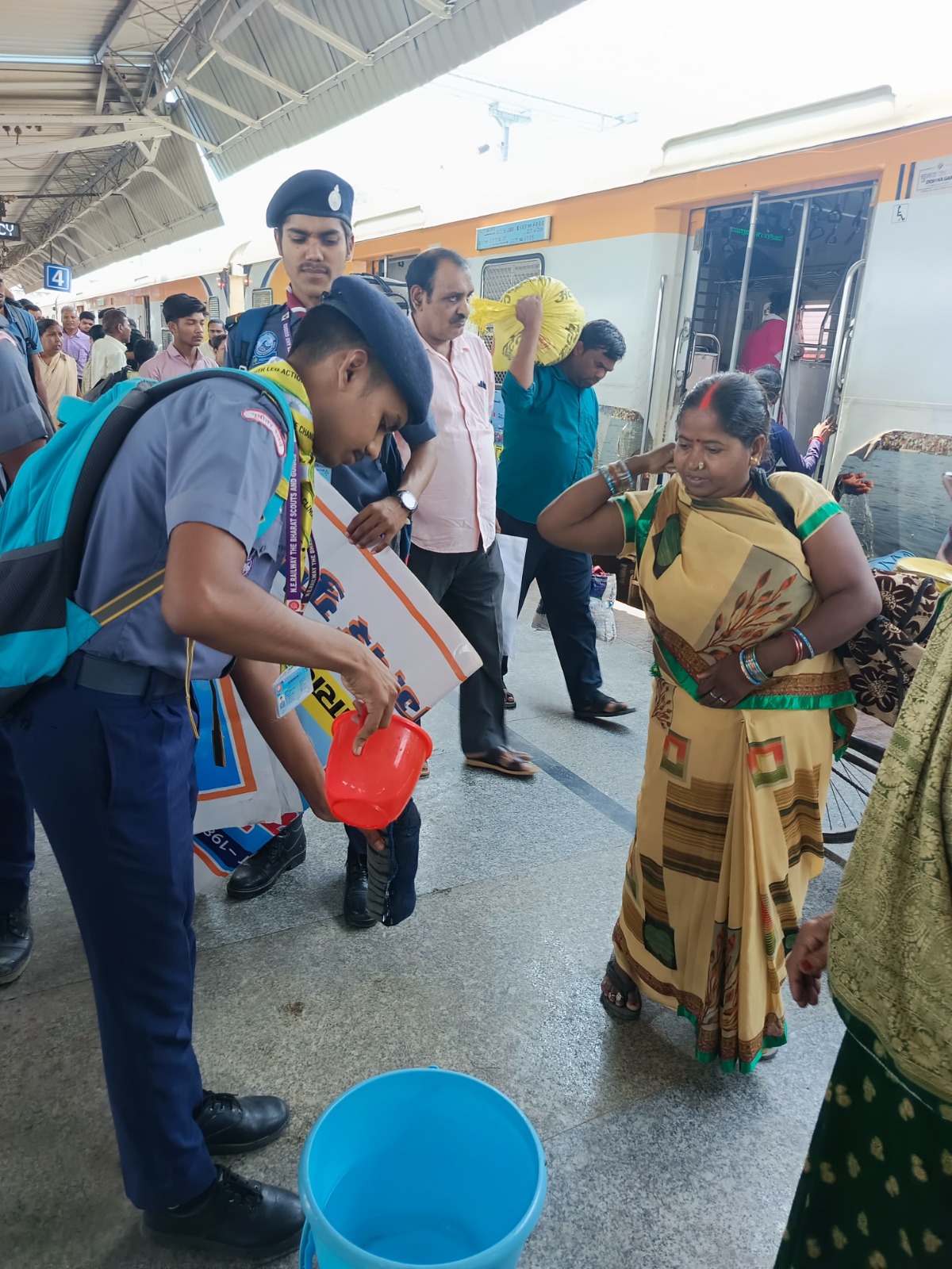 वाराणसी (राष्ट्र की परम्परा)। भीषण गर्मी में यात्रियों को राहत पहुंचाने के उद्देश्य से मंडल रेल प्रबंधक विनीत कुमार श्रीवास्तव के निर्देशन एवं वरिष्ठ मंडल यांत्रिक इंजीनियर(कैरेज एण्ड वैगन) अनुभव पाठक के नेतृत्व में स्काउट एण्ड गाइड जिला संघ वाराणसी द्वारा वाराणसी सिटी एवं भटनी रेलवे स्टेशनों पर गर्मी की तपन को देखते हुए, मंगलवार 29.04.2025 को यात्रियों को शीतल पेय जल उपलब्ध कराकर उनकी प्यास बुझाने के उद्देश्य से ग्रीष्मकालीन सेवा शिविर का आयोजन किया गया । इस दौरान वाराणसी सिटी एवं भटनी रेलवे स्टेशनों से गुजरने वाली ट्रेनों के जनरल कोच में पूर्वोत्तर रेलवे भारत स्काउट एण्ड गाइड जिला संघ वाराणसी के सदस्यों द्वारा, भीषण गर्मी में जल सेवा अभियान चलाकर प्यासे रेल यात्रियों को राहत पहुँचाई गई। इसी क्रम में पूर्वोत्तर रेलवे भारत स्काउट एवं गाइड जिला संघ वाराणसी की वाराणसी शाखा एवं भटनी शाखा द्वारा 29 अप्रैल, 2025 वाराणसी सिटी एवं भटनी रेलवे स्टेशनों से गुजरने वाली गाड़ियों के सामान्य कोच में यात्रा करने वाले रेल यात्रियों के सहायतार्थ जल सेवा अभियान के अंतर्गत शीतल पानी पिलाकर सैकड़ो यात्रियों की प्यास बुझाई गई। इसके साथ ही पूर्वोत्तर रेलवे भारत स्काउट्स एवं गाइड्स जिला संघ- वाराणसी यूनिट शिविर में जिला संघ के जय प्रकाश नारायण ग्रुप/भटनी एवं श्रीराम बाजपेयी ग्रुप/ वाराणसी ने अपना सहयोग प्रदान किया । इस कार्यक्रम में भटनी स्टेशन पर रंजय खरवार के नेतृत्व में विनय कुमार शर्मा , रंजीत कुमार गुप्ता, आदर्श सिंह, आशुतोष कुमार एवं धीरज कुमार कन्नौजिया सहित 06 सदस्य उपस्थित रहे तथा वाराणसी सिटी में श्रीराम बाजपेयी एवं वीर कुंवर सिंह ग्रुप के स्काउटर रामचंद्र सिंह यादव के नेतृत्व में हिमांशु भारद्वाज, भानु पटेल, विशाल पटेल उपस्थित रहे । इस प्रकार पूर्वोत्तर रेलवे भारत स्काउट्स एवं गाइड्स जिला संघ के कुल 10 सदस्यों ने मिलकर ग्रीष्मकालीन सेवा शिविर के अंतर्गत जल सेवा अभियान चलाकर भीषण गर्मी से जूझते रेल यात्रियों को राहत दिलाई।
