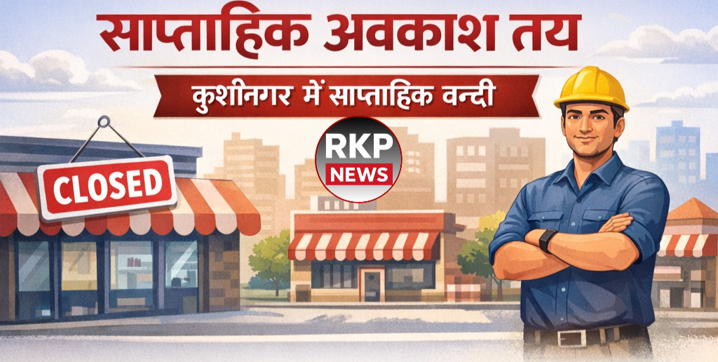 कुशीनगर (राष्ट्र की परम्परा)। जनपद में श्रमिकों को साप्ताहिक अवकाश सुनिश्चित करने और व्यापारिक गतिविधियों को नियमानुसार संचालित करने के उद्देश्य से वर्ष 2026 के लिए नगर पालिका परिषदों एवं नगर पंचायतों में साप्ताहिक बन्दी दिवस निर्धारित कर दिए गए हैं। यह निर्णय उत्तर प्रदेश दुकान एवं वाणिज्य अधिष्ठान अधिनियम, 1962 के तहत प्राप्त अधिकारों के प्रयोग के अंतर्गत लिया गया है।