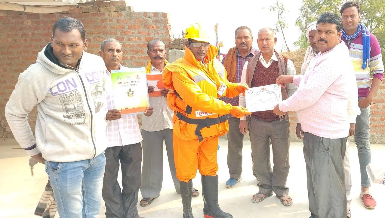 ग्राम प्रधान अंगद यादव ने आपदा मित्र को परिचय पत्र प्रदान करते हुए सम्मानित किया। इस दौरान आपदा मित्र का प्रशिक्षण लेकर आए दिनेश प्रसाद से पूछा गया की, इस प्रशिक्षण में आपको क्या-क्या जानकारियां मिली और आप किस किस तरीके से लोगों के आपातकाल में सहायता करेंगे। जिस पर उन्होंने बताया कि सरकार की यह योजना आपदा मित्र का प्रशिक्षण बहुत ही प्रशंसनीय कार्य है, हमें यह प्रशिक्षण मिला है जिससे आग लगने बाढ़ आने आदि आपदा के परिस्थिति में हम बचाव एवं राहत कार्य में हिस्सा लेंगे, इसके लिए बकायदा सरकार द्वारा हमें किट भी प्रदान किया गया है जो कि अलग-अलग परिस्थितियों के लिए अलग-अलग है हम किसी भी परिस्थिति, में जहां भी हमारी आवश्यकता आन पड़ेगी तत्परता से हम वहां उपलब्ध रहेंगे, और जनमानस का सहयोग करेंगे ।