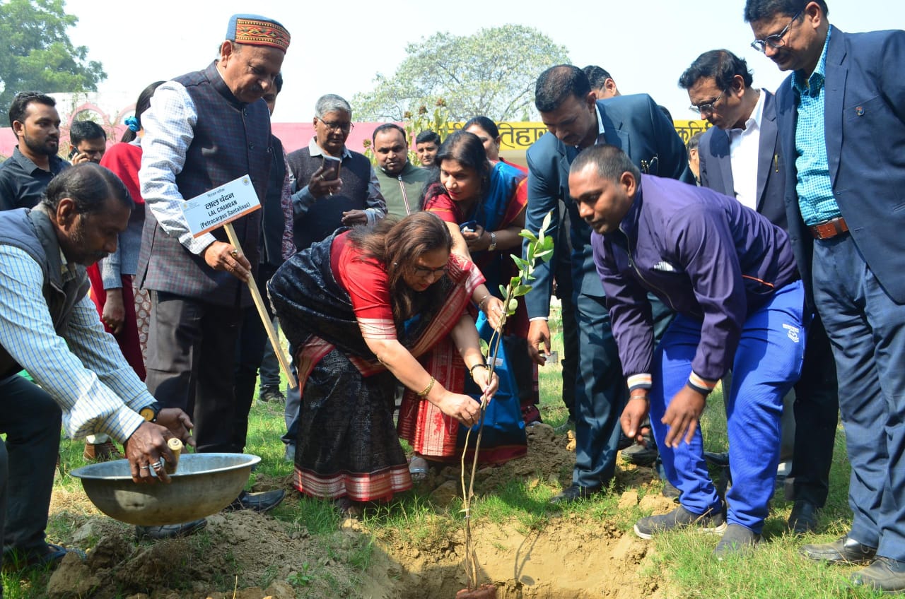 इस दूरदर्शी कार्यक्रम का नेतृत्व करते हुए कुलपति प्रोफेसर पूनम टंडन ने लाल चंदन का पौधा लगाया और कहा कि हमें यह निश्चित रूप से विचार करना होगा कि हम अपनी भावी पीढ़ी को क्या सौंप रहे हैं! जो सत्य, शिव और सुंदर है उसे बचाना हम सब का दायित्व है। न सिर्फ बचाना बल्कि हमें उसके पल्लवन, पोषण व संरक्षण की भी चिंता करनी होगी। हमें ध्यान रखना होगा कि इस धरती पर जो कुछ भी मौजूद है वह सिर्फ हमारे उपभोग के लिए ही नहीं है। हमें उसे आगामी पीढ़ी को भी सौंपना है।