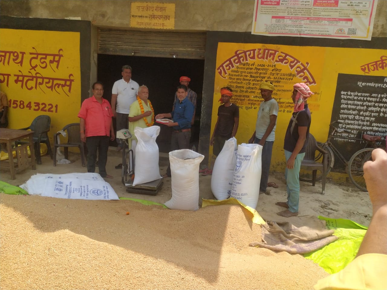 उत्तर प्रदेश सरकार के द्वारा किसानों के उपज का उचित मूल्य देने के लिए जगह-जगह पर गेहूं क्रय केंद्र की स्थापना की गई है जिसके तहत तहसील सिकंदरपुर के चेतन किशोर गांव में स्थित विपणन शाखा सिकंदरपुर गेहूं की खरीदारी शुरू हो गई बनहरा निवासी लाल बाबू राय को प्रथम दिन गेहूं क्रय केंद्र पर अपना गेहूं लाने पर विपणन शाखा प्रभारी विकास यादव के द्वारा माला पहना कर स्वागत किया गया एवं उपस्थित सभी लोगों को मिठाई भी खिलाई गई लाल बाबू राय से 35 कुंतल गेहूं की खरीदारी की गई वह इस सीजन का पहला किसान है जिनके द्वारा 35 कुंतल गेहूं क्रय केंद्र विपणन शाखा सिकंदरपुर पर पहुंचाया गया इस अवसर पर उपस्थित लोगों को विपणन शाखा प्रभारी के द्वारा मिठाई खिलाकर स्वागत किया गया उन्होंने बताया कि 1700 किसानों का अभी तक रजिस्ट्रेशन हुआ है