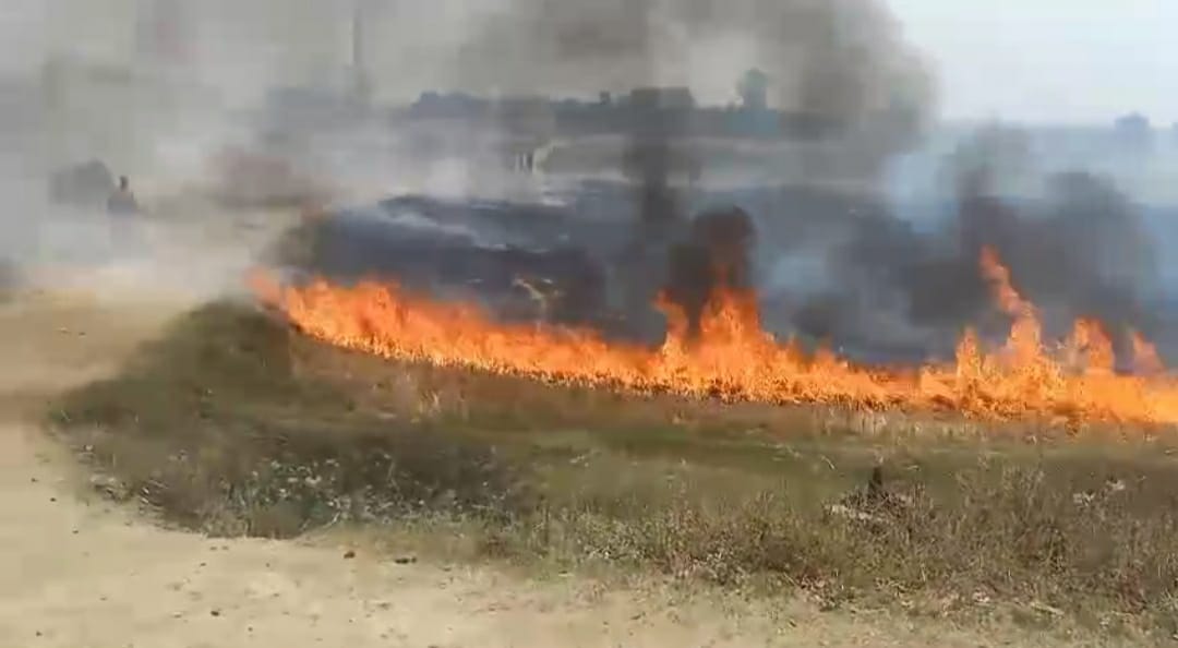 गेहूं की डंठल में आग लगी लोग हुए परेशान