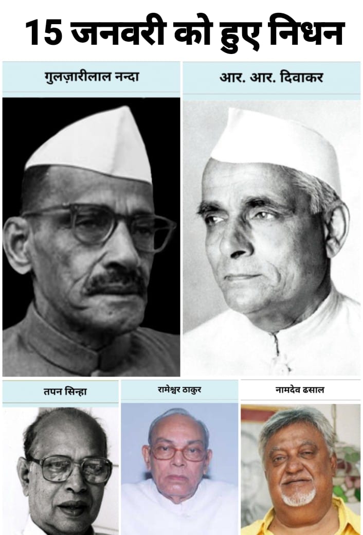 भारतीय इतिहास में 15 जनवरी केवल एक तारीख नहीं, बल्कि वह दिन है जब राजनीति, साहित्य, सिनेमा, पत्रकारिता और राष्ट्रसेवा से जुड़े अनेक महान व्यक्तित्वों का अवसान हुआ। इन विभूतियों ने अपने जीवनकाल में जो योगदान दिया, वह आज भी भारत की सामाजिक, सांस्कृतिक और लोकतांत्रिक चेतना को दिशा देता है। आइए जानते हैं 15 जनवरी को हुए महत्वपूर्ण निधन और उनके जीवन, जन्मस्थल व राष्ट्रहित में योगदान के बारे में विस्तार से।
