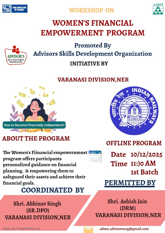 वाराणसी (राष्ट्र की परम्परा डेस्क)। पूर्वोत्तर रेलवे वाराणसी मंडल और कौशल विकास संगठन के संयुक्त तत्वावधान में महिला वित्तीय सशक्तिकरण कार्यशाला वाराणसी का सफल आयोजन न्यू लोको कॉलोनी स्थित इन्द्रप्रस्थ सामुदायिक हाल में किया गया। मंडल रेल प्रबंधक आशीष जैन की प्रेरणा और वरिष्ठ मंडल कार्मिक अधिकारी अभिनव सिंह के नेतृत्व में आयोजित इस कार्यक्रम का मुख्य उद्देश्य महिलाओं को वित्तीय जागरूकता, वित्तीय सुरक्षा और दीर्घकालिक आर्थिक स्थिरता के बारे में शिक्षित करना है।