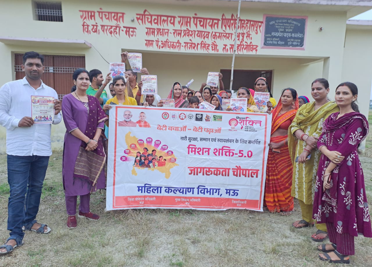 मऊ ( राष्ट्र की परम्परा)। जिला प्रोबेशन अधिकारी डॉ श्वेता त्रिपाठी के निर्देशानुसार मिशन शक्ति फेज 5.0 के विशेष जागरूकता अभियान के अंतर्गत महिला कल्याण विभाग मऊ से हब फॉर इम्पॉवरमेंट ऑफ वुमेन की टीम द्वारा विकास खंड परदहा के अन्तर्गत पिपरीडीह ग्रामसभा मे जागरूकता चौपाल कार्यक्रम का आयोजन किया गया जिसमें घरेलु हिंसा एवं दहेज उन्मूलन विषय पर चर्चा करते हुये महिला कल्याण विभाग द्वारा संचालित सभी कल्याणकारी योजनाओं यथा निराश्रित महिला पेंशन, मुख्यमंत्री कन्या सुमंगला योजना, मुख्यमंत्री बाल सेवा योजना (सामान्य), वन स्टॉप सेंटर, चाइल्ड हेल्प लाइन,मुख्यमंत्री सामुहिक विवाह योजना, मुख्यमंत्री राष्ट्रीय पारिवारिक लाभ योजना आदि के बारे में विस्तृत जानकारी दी गई,साथ ही सभी हेल्प लाइन नंबर जैसे चाइल्ड हेल्पलाइन 1098, मुख्यमंत्री हेल्पलाइन नंबर 1076, महिला पावर हेल्पलाइन 1090, महिला हेल्पलाइन 181 आदि के बारे में विस्तार से जानकारी दी गयी।