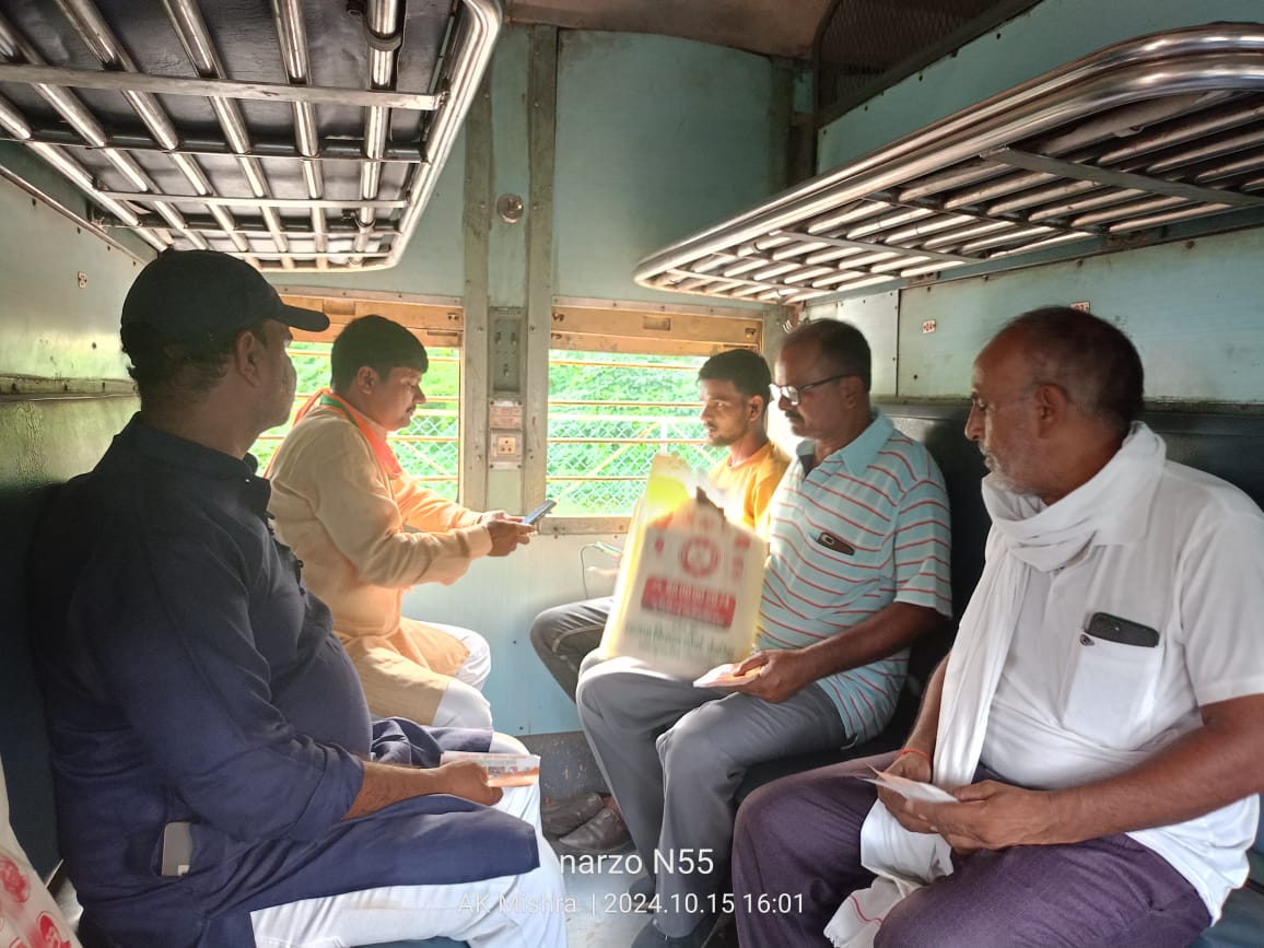 देवरिया(राष्ट्र की परम्परा)भाजपा किसान मोर्चा देवरिया द्वारा 2 सितम्बर से चलाए जा रहे प्राथमिक सदस्यता अभियान के दूसरे चरण के अंतिम दिन किसान मोर्चा कार्यकर्ताओ ने बरहजिया ट्रेन में भटनी से बरहज के बीच यात्रा कर रहे 100 से अधिक यात्रियों को मिस्ड कॉल के माध्यम से भाजपा सदस्य बनाया।