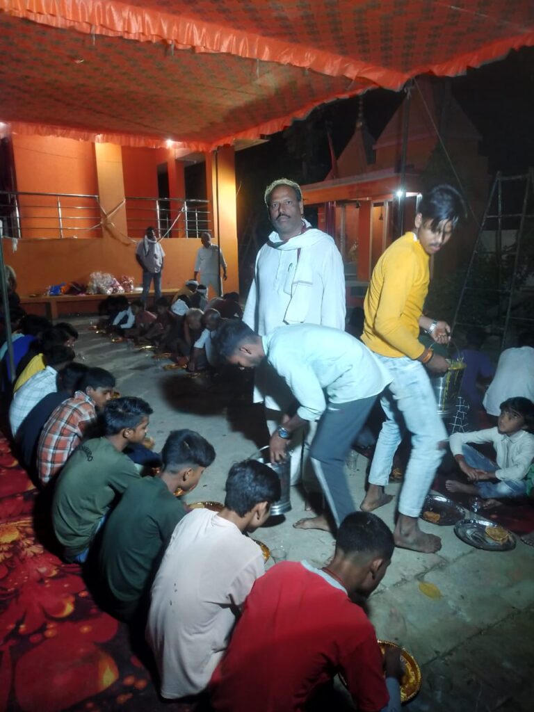 हनुमान मंदिर के स्थापना दिवस पर पूजन अर्चन के बाद महाप्रसाद का भव्य आयोजन किया गया, जिसमे सैकड़ो भक्तों ने प्रसाद ग्रहण किये।