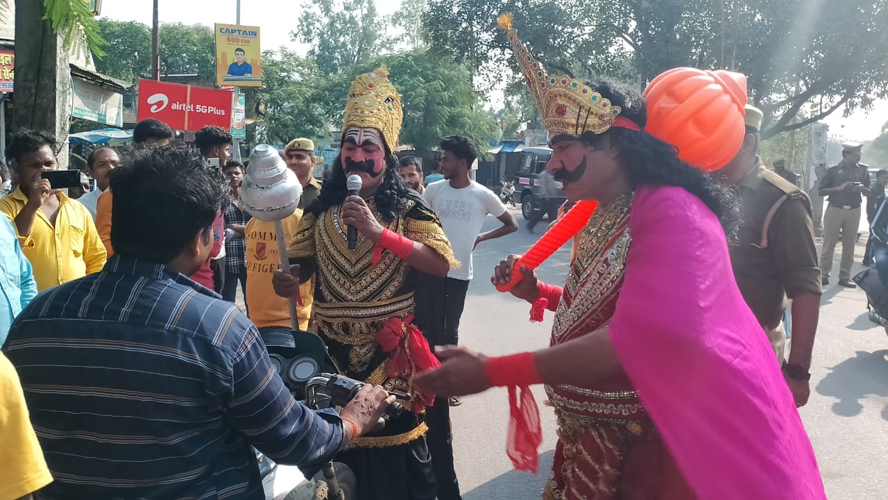 महराजगंज ( राष्ट्र की परम्परा)। पुलिस अधीक्षक के निर्देशन में यातायात माह के दृष्टिगत यातायात प्रभारी द्वारा नगर चौराहे पर नुक्कड़ नाटक के माध्यम से यमराज और चित्रगुप्त का रुप धारण कर लोगों को यातायात नियमों के पालन हेतु जागरूक किया गया। नुक्कड़ के माध्यम से यातायात सम्बन्धी नियमों के सम्बन्ध में लोगों को निर्देश देते हुए यमराज ने कहा- बेटा बहाना पुलिस से कर सकते हो, यमराज से नहीं यम हैं हम, सावधानी हटी दुर्घटना घटी इसलिए ऊपर से निगाह तुम्हारे सर पर ही रखते हैं हेलमेट लगाओ अपने आप को हमसे छुपाओ अगर यम से बचना है तो निम्न बातों को ध्यान में रखना है सड़क दुर्घटना से बचने के उपाय को अपनाओ ताकि कोई अप्रिय घटना घटित न हो इस लिए टैफिक नियमों का पालन करें, हार्न बजाना निषेध वाले स्थानो पर हार्न न बजाये,साईकिल निषेध बाले स्थानो पर साईकिल का प्रयोग न करें,वाहन चलाते समय मोबाइल प्रयोग न करें, शराब पीकर वाहन न चलायें ,सिर सलामत तो सब सलामत ,बाइक चलाते समय हेलमेट का प्रयोग करें,दो पहिया वाहन चलाते समय हेलमेट का प्रयोग अवश्य करें,वाहन चलाते समय मोबाइल से बात न करें,चार पहिया वाहन चलाते समय सीट बेल्ट का प्रयोग अवश्य करें,निर्धारित गति से वाहन चलायें,18 वर्ष से कम के बच्चों को वाहन चलाने हेतु न दें,वाहन हमेशा अपने बाये से चलायें,पास मिलने पर ही आगे बढ़े।,दाहिने या बाये मुड़ते समय दिन में हाथ का संकेत एवं इण्डी केटर दोनों का प्रयोग करें एवं रात्रि में इण्डी केटर व डीपर का प्रयोग करें दो पहिया वाहन पर तीन व्यक्ति न बैठें,सवारी गाड़ी में मानक के अनुसार यात्री बैठायें,ओवर लोड वाहन न चलायें, सावधानी पूर्वक वाहन चलायें, परमिट एवं फिटनेश के नियमों का पालन करें, सड़क पार करते समय दाहिने, बाए अच्छी तरह देख लें तब आगे बढ़े, अनाधिकृत रूप से लाल, नीला बत्ती एवं शायरन, हूटर का प्रयोग न करें ,वाहनों पर पद परिचय न लिखवायें,तेज रफ्तार से गाड़ी न चलायें सीट वेल्ट लगाकर वाहन चलाये आदि पर यातायात नियमों का लोगों को जागरुक किया इस बीच यातायात सेल प्रभारी सहित ट्रैफिक पुलिस मौजूद रहे।