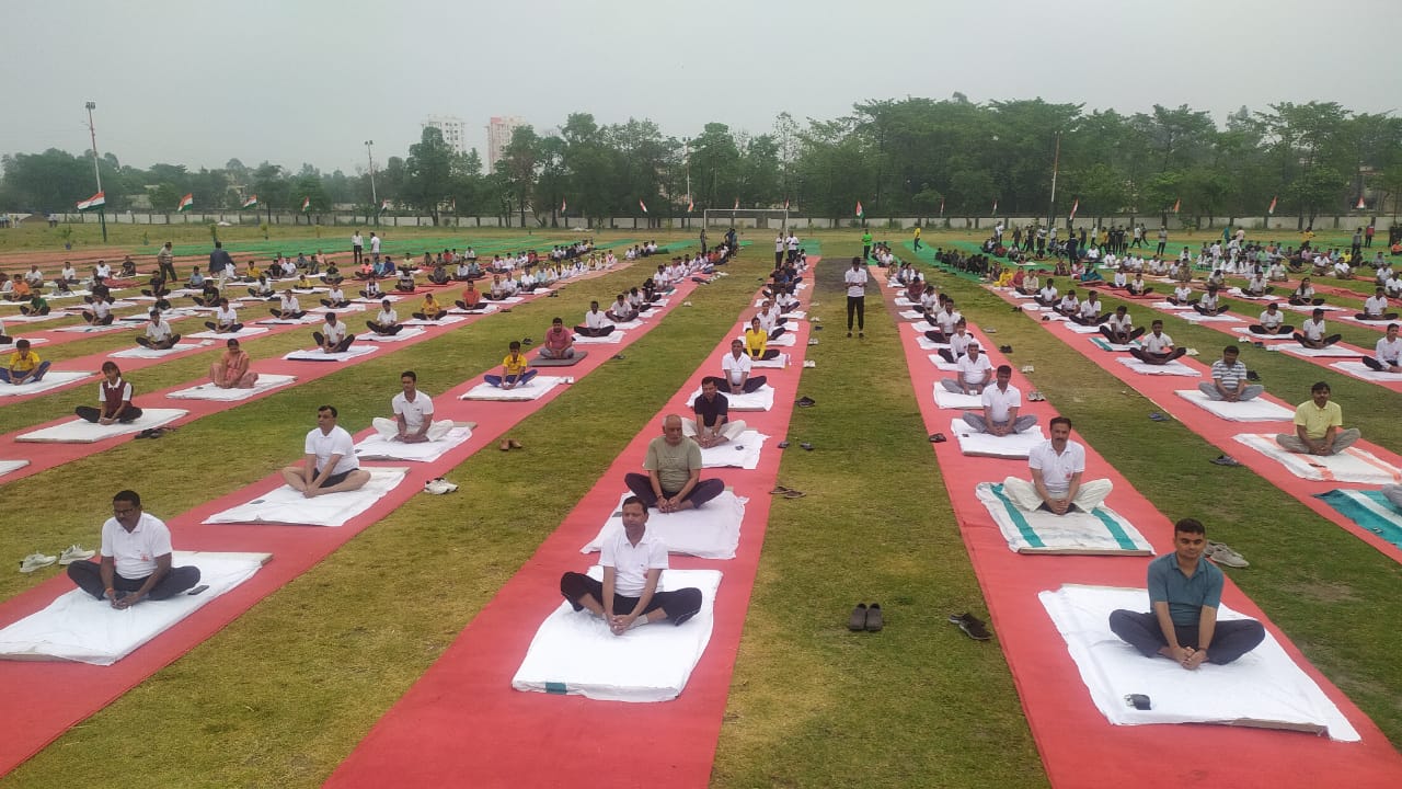 इससे पूर्व मुख्य योग प्रशिक्षक कृष्ण मुरारी सिंह के नेतृत्व में शुभम द्विवेदी, रानी चंद्रा व विपुल भारद्वाज द्वारा सभी लोगों को योगाभ्यास कराया गया। योगाभ्यास का आरम्भ ईश्वर प्रार्थना से किया गया। इसके बाद ताड़ासन, वृक्षासन, पादहस्तासन, अर्द्धचंद्रासन, भद्रासन, बज्रासन सहित योग प्रोटोकॉल का अनुसार अन्य आसनों व प्राणायामों का अभ्यास कराया गया।