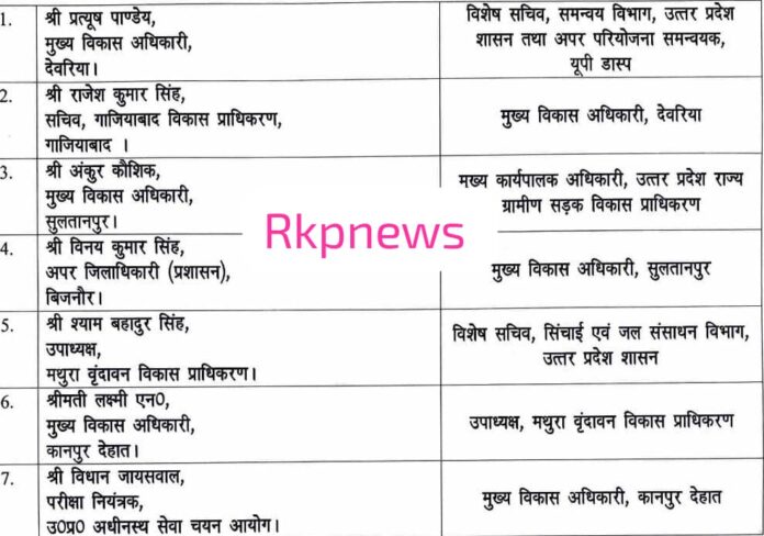 जारी आदेश के अनुसार राजेश कुमार सिंह को देवरिया का नया मुख्य विकास अधिकारी (CDO) नियुक्त किया गया है। वहीं विनय कुमार सिंह को सुल्तानपुर जिले की विकास जिम्मेदारी सौंपी गई है। इसके साथ ही विधान जायसवाल को CDO कानपुर देहात बनाया गया है, जहां उनसे ग्रामीण विकास और बुनियादी ढांचे को मजबूत करने की उम्मीद की जा रही है।