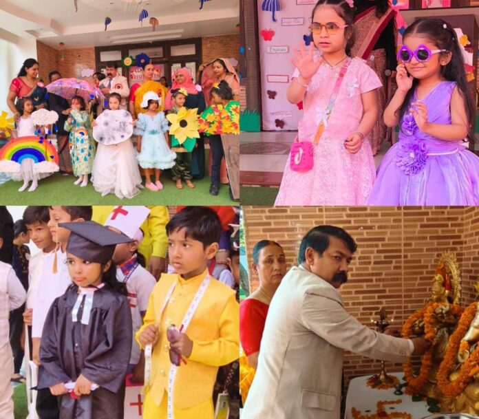 एलकेजी के विद्यार्थियों ने विभिन्न ऋतुओं का जीवंत मंचन किया, जिसमें आकर्षक वेशभूषा और प्रभावी संवाद अदायगी देखने को मिली।